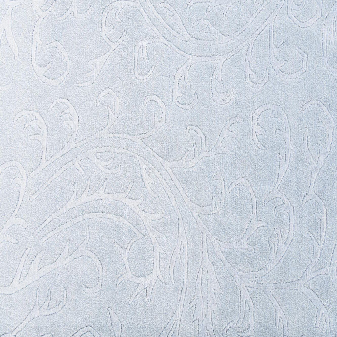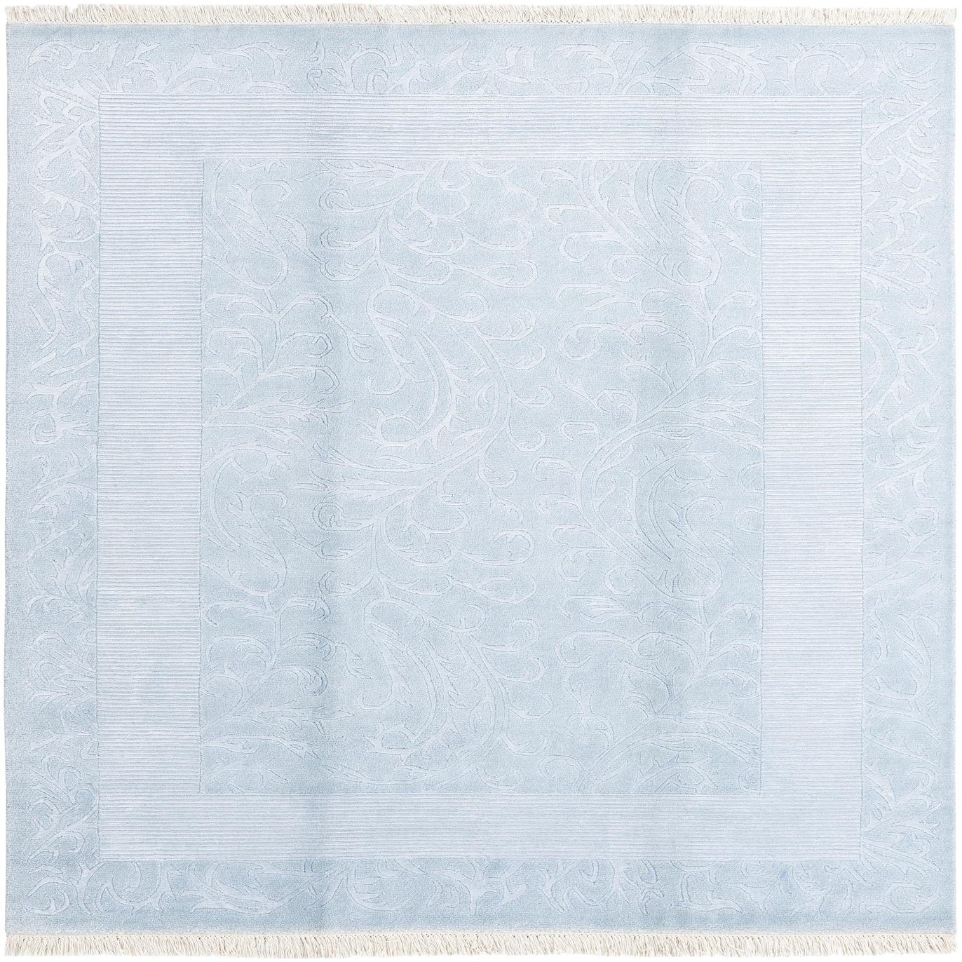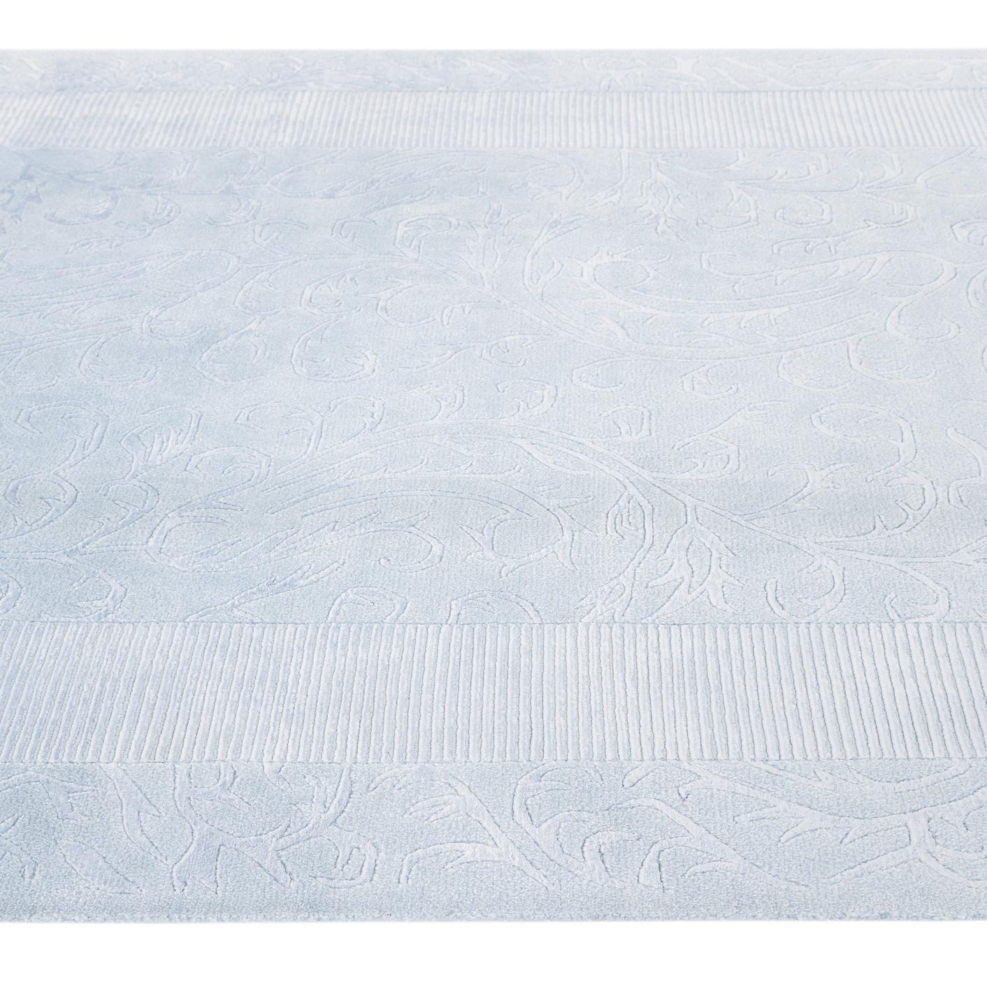 The design features a lighter shade outlining the floral motifs and border, providing a delicate contrast that highlights the craftsmanship of the piece. The light blue color palette is versatile and can easily integrate with a variety of decor styles, from contemporary to classic, without overwhelming the space.