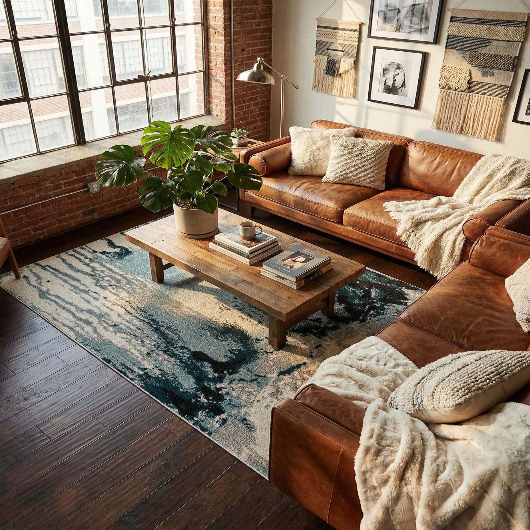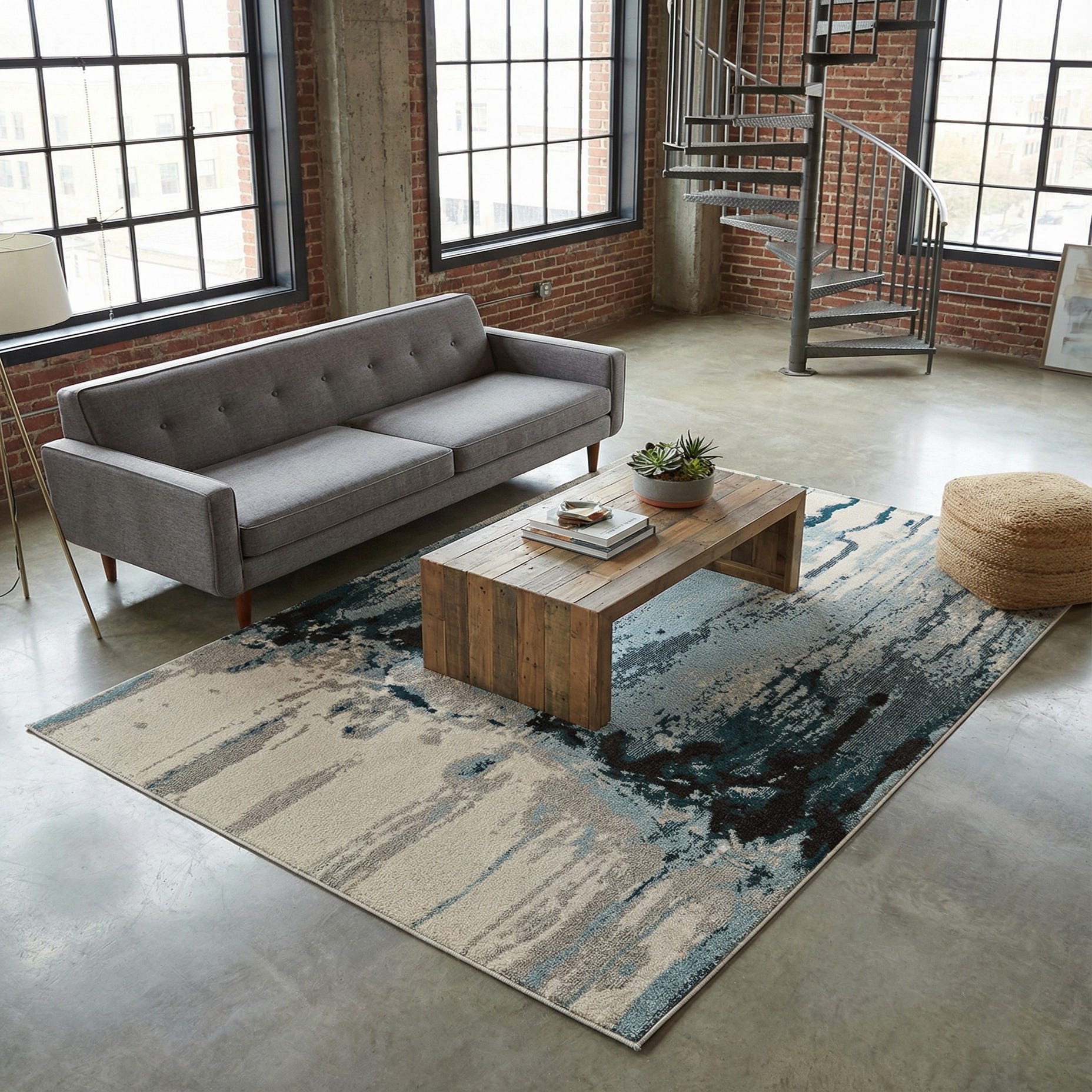 This piece pairs well with coastal and modern interiors alike: pair it with white or cream upholstery and warm wood tones for a relaxed living room, or use it under a glass-top dining table to anchor a streamlined, contemporary dining area. It also works as a layered accent in a minimalist bedroom or home office, coordinating easily with navy or charcoal accents and matte black metal furnishings.
