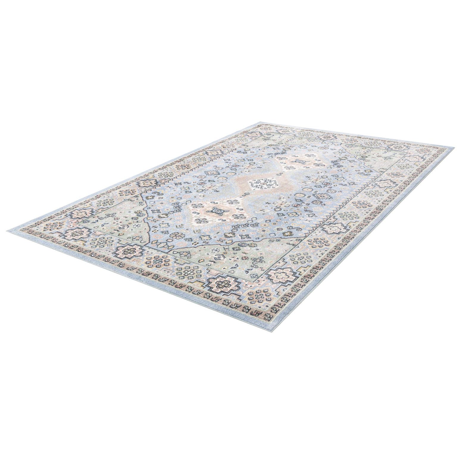 Primary color is Light Blue. Colors in this rug include: Light Blue, Ivory, Light Green, Pink, Beige, Yellow.