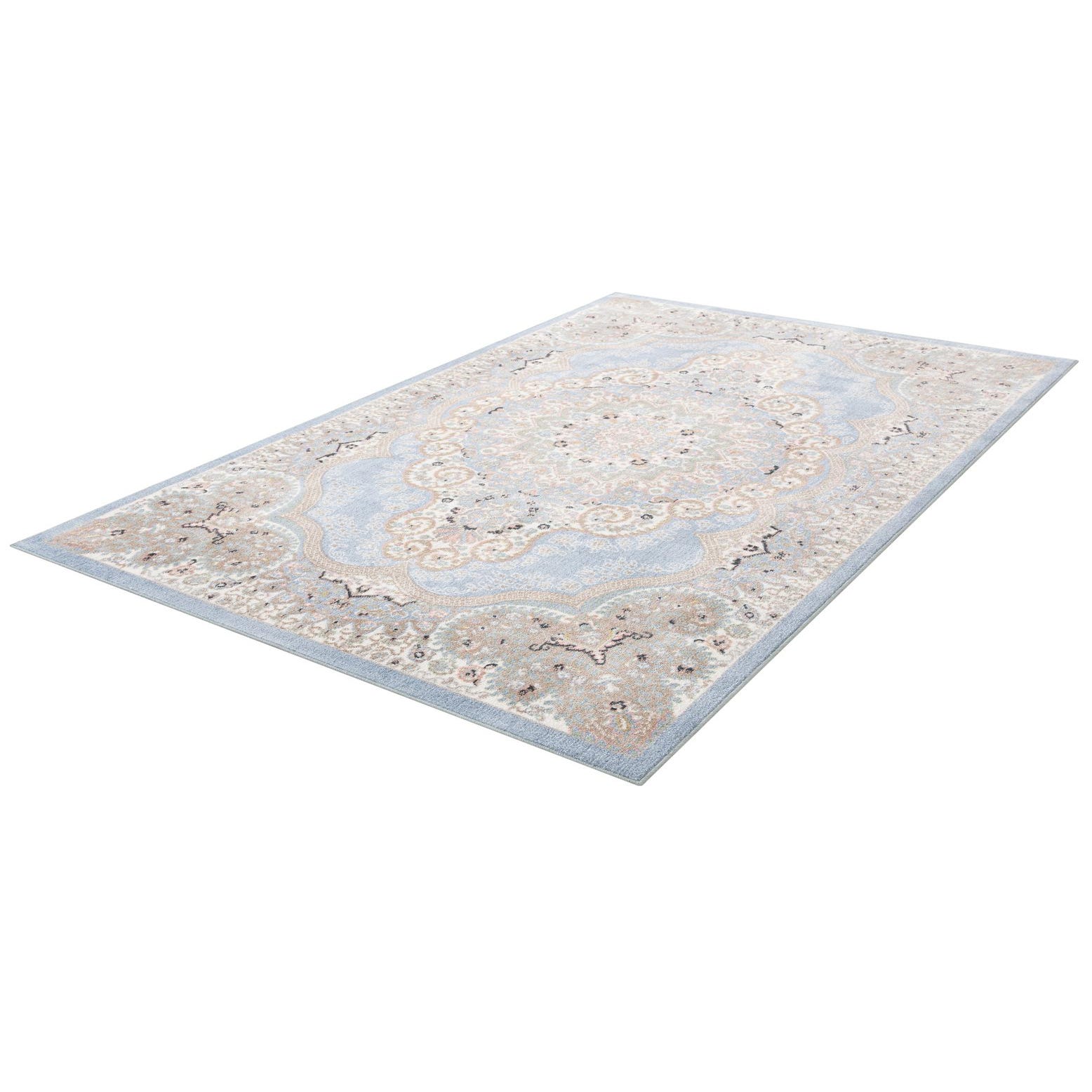 Primary color is Light Blue. Colors in this rug include: Light Blue, Beige, Ivory, Light Green, Pink.
