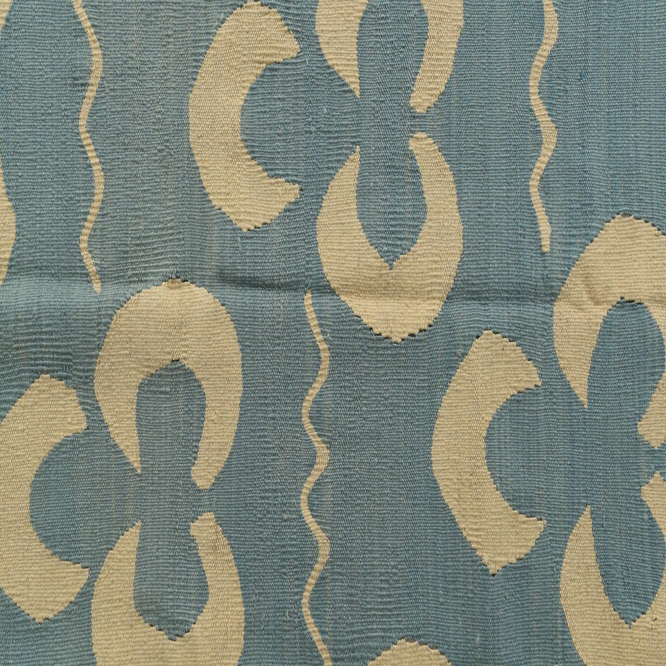 The Kilim Modern collection presents a hand-woven 5x8 rug crafted from 100% wool, offering both durability and a soft texture underfoot. This rug showcases a Light Blue background complemented by Cream accents, harmonizing to create a visually pleasing aesthetic. The design features a bold, geometric pattern that gives a nod to traditional kilim motifs while maintaining a fresh, contemporary look. The clean-lined shapes paired with the rhythmic pattern lends itself well to a myriad of interior styles, from minimalist and Scandinavian-inspired spaces to more eclectic and bohemian settings. The light and neutral color palette of this rug would enhance the brightness of a room and could serve as a serene foundation in a living area or as an eye-catching statement in a dining space. The natural wool texture adds an organic touch, while the crisp design keeps it modern and versatile.