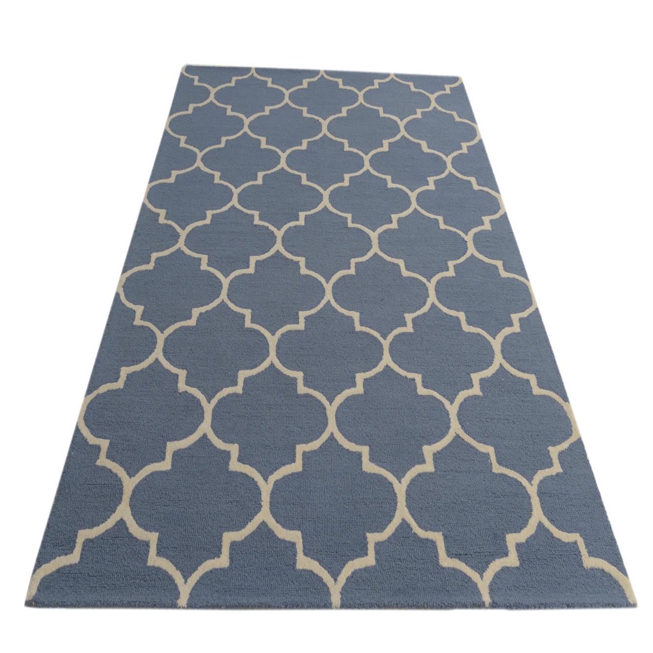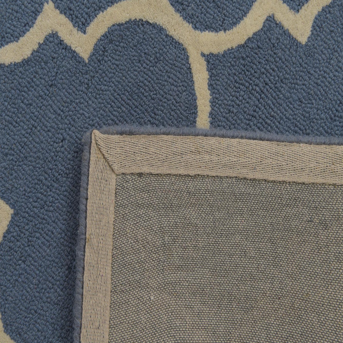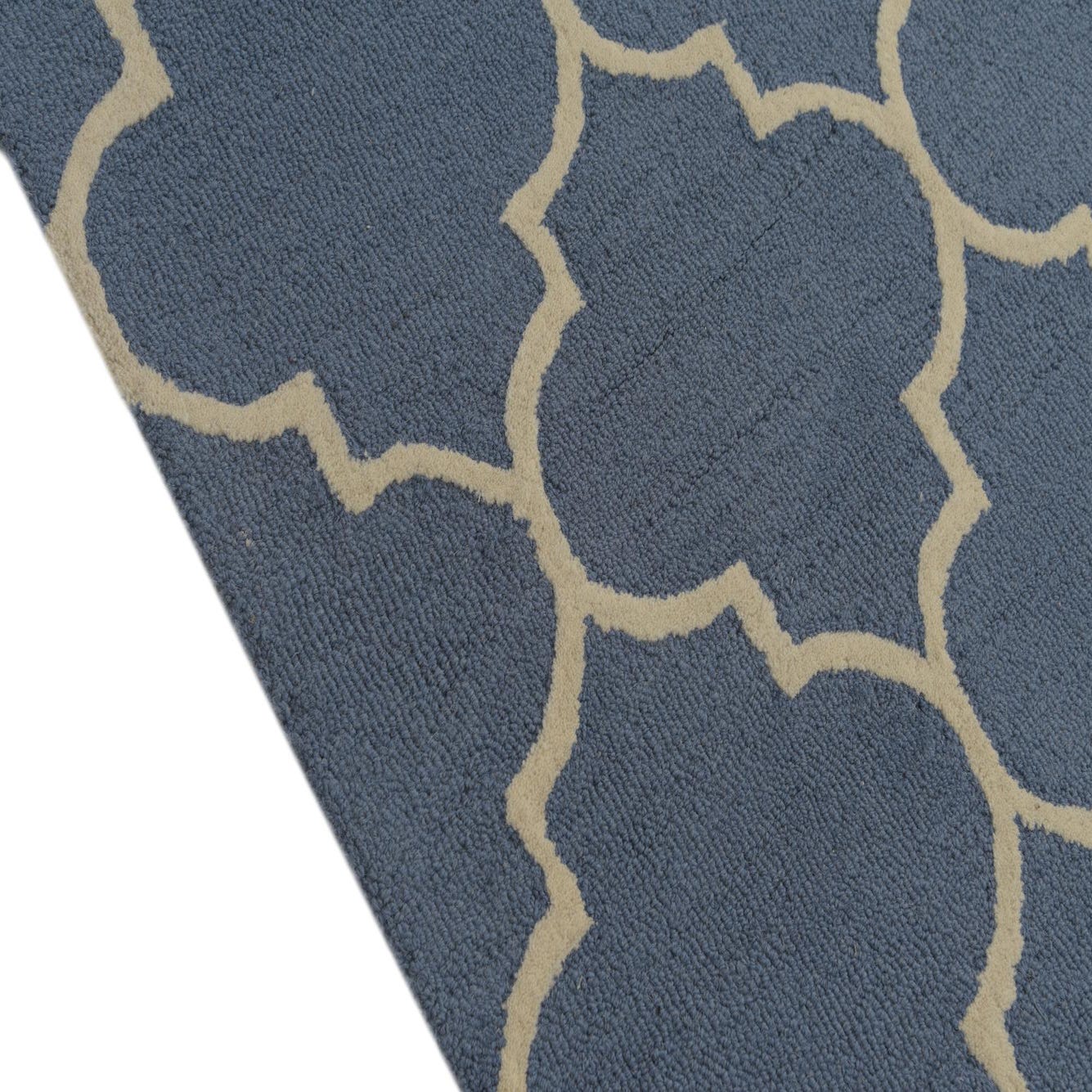 The Luna Collection offers a hand-tufted wool and cotton rug measuring 5x8, crafted to deliver a balance of comfort and style. This piece presents a harmonious light blue background accentuated by a classic ivory pattern, forming a lattice of Moroccan-inspired trellis designs. The rug features a plush texture that provides a soft underfoot experience, courtesy of its meticulous hand-tufted construction.