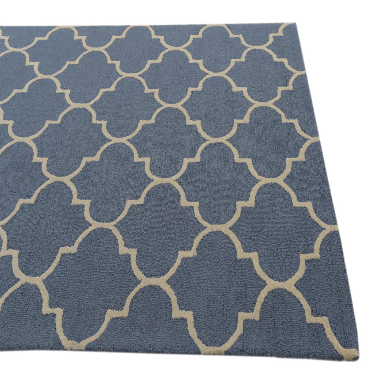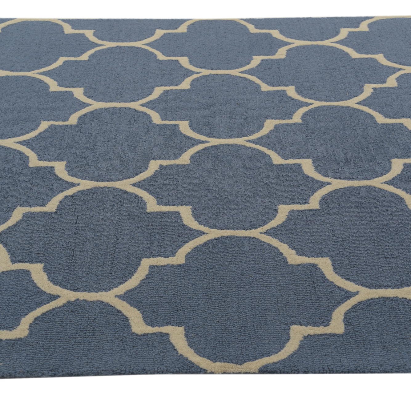 A 5x8 rectangular Luna rug in blue with a cream modern abstract quatrefoil pattern, perfect for a living room.
