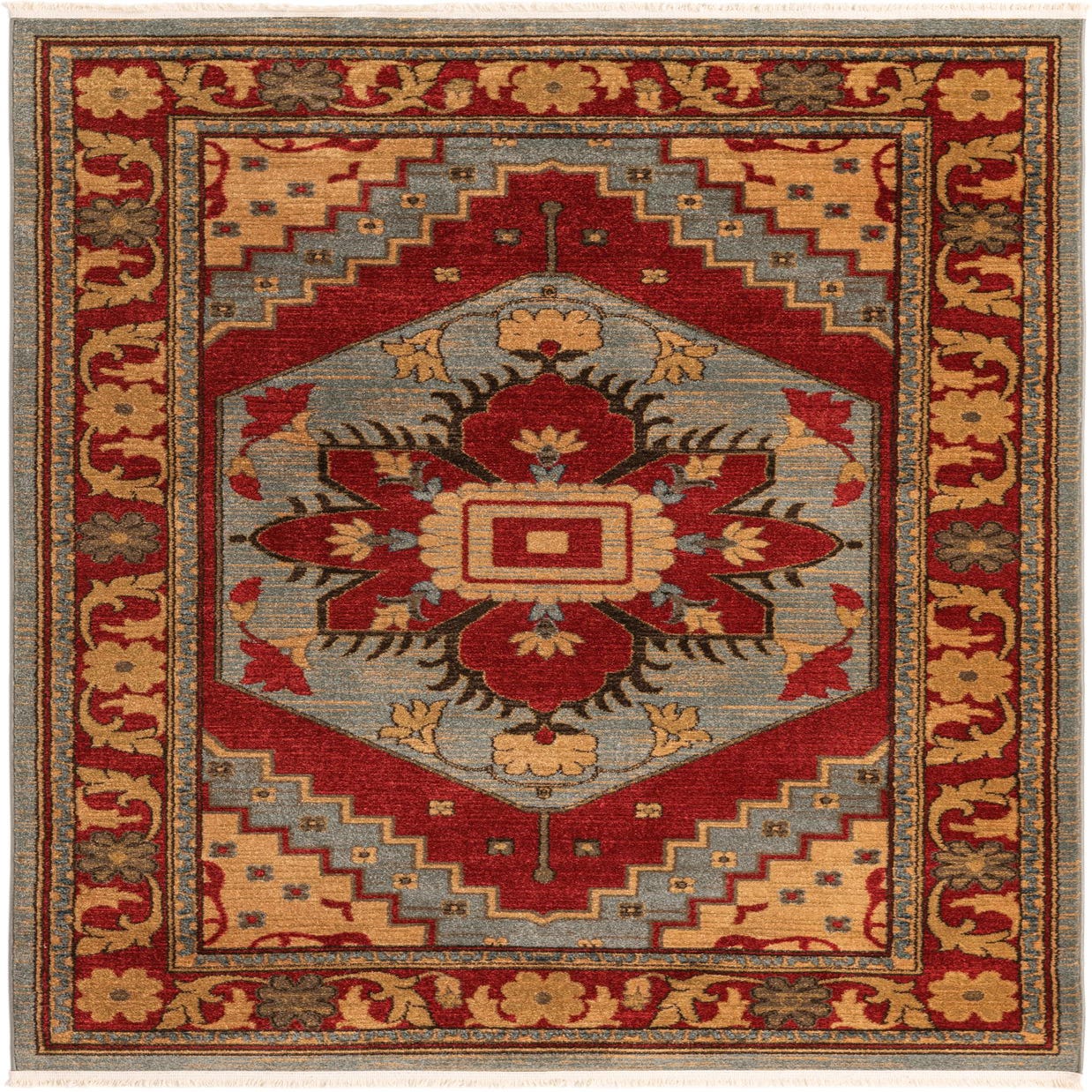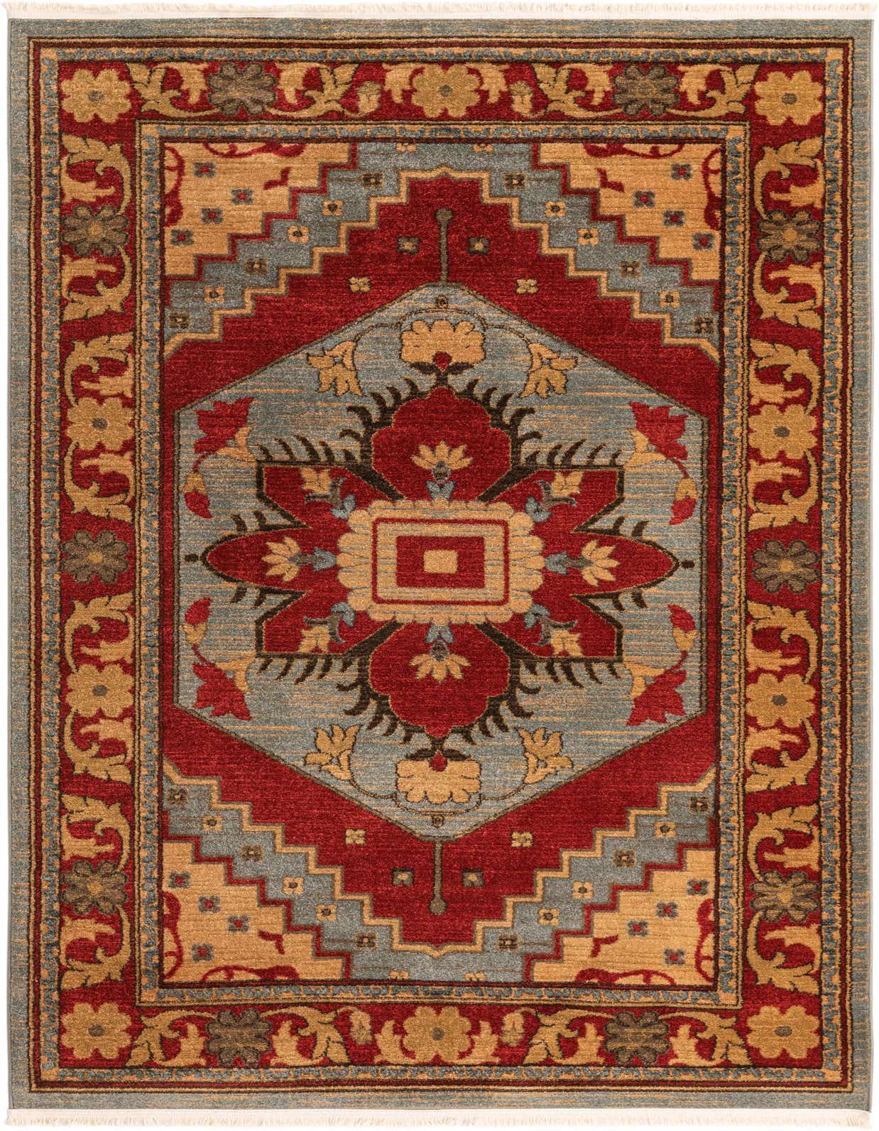Primary color is Light Blue. Colors in this rug include: Light Blue, Cream, Red.
