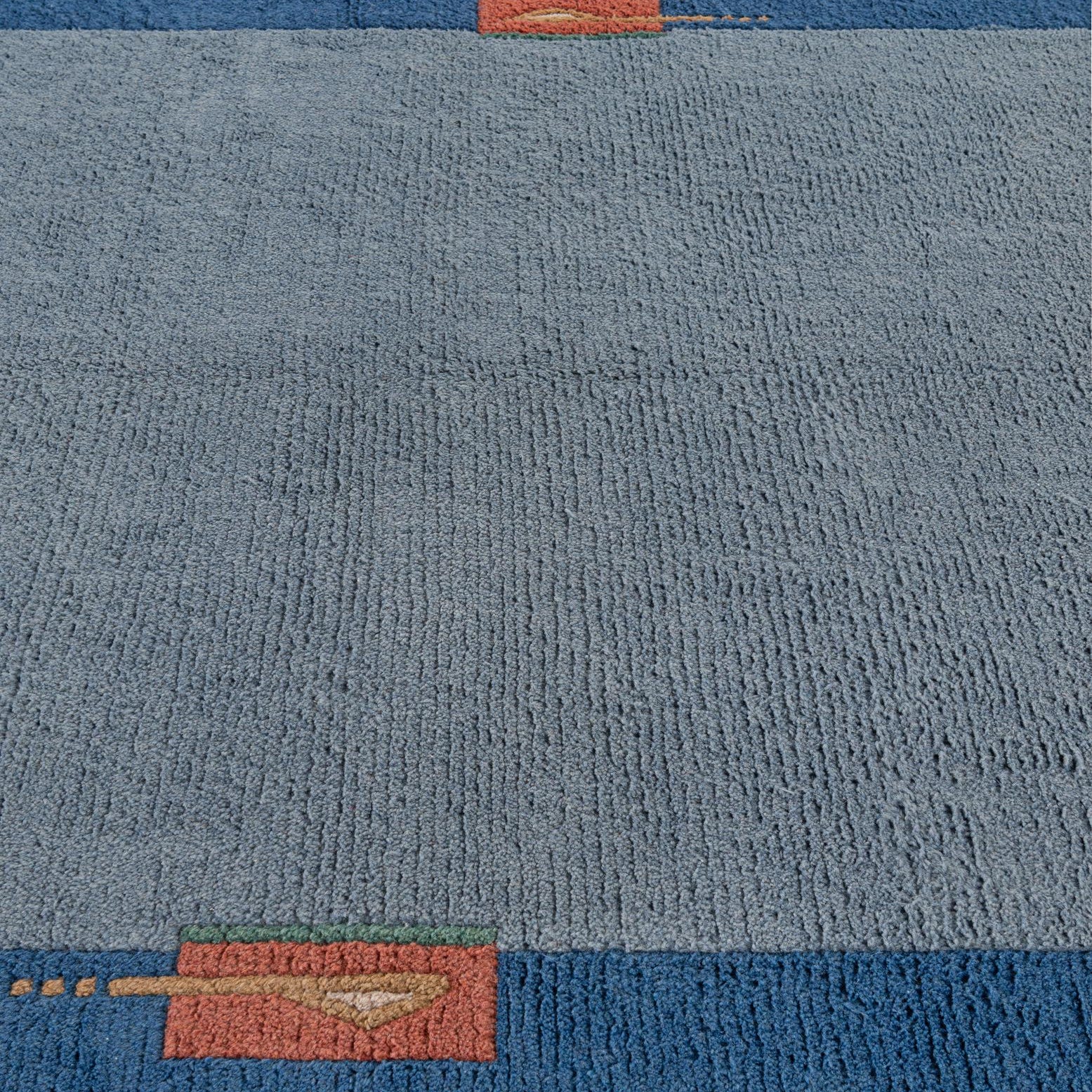 Primary color is Light Blue. Colors in this rug include: Light Blue, Beige, Blue, Ivory, Orange, Green.