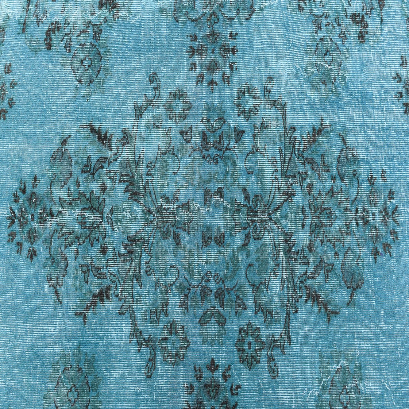 A 5x8 rectangular Ultra Vintage rug with a distressed Persian pattern in varying shades of blue, ideal for a living room.