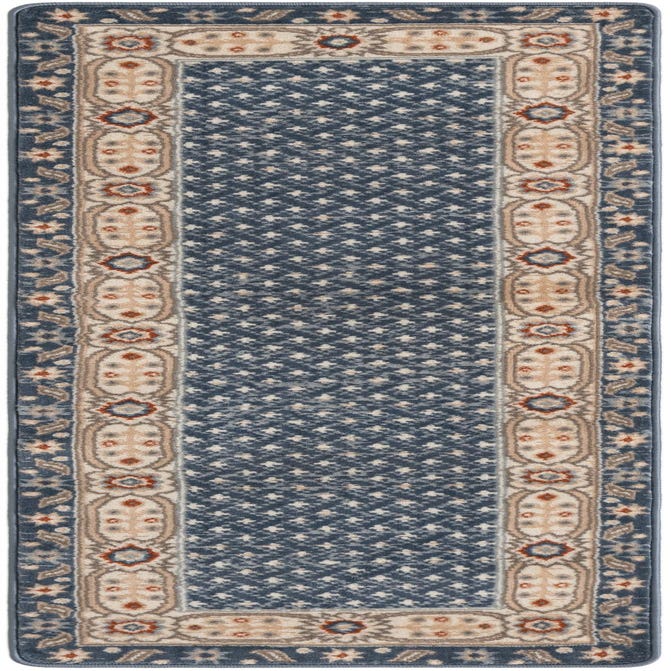 Primary color is Light Blue. Colors in this rug include: Light Blue, Gray, Ivory, Rust Red, Pink.