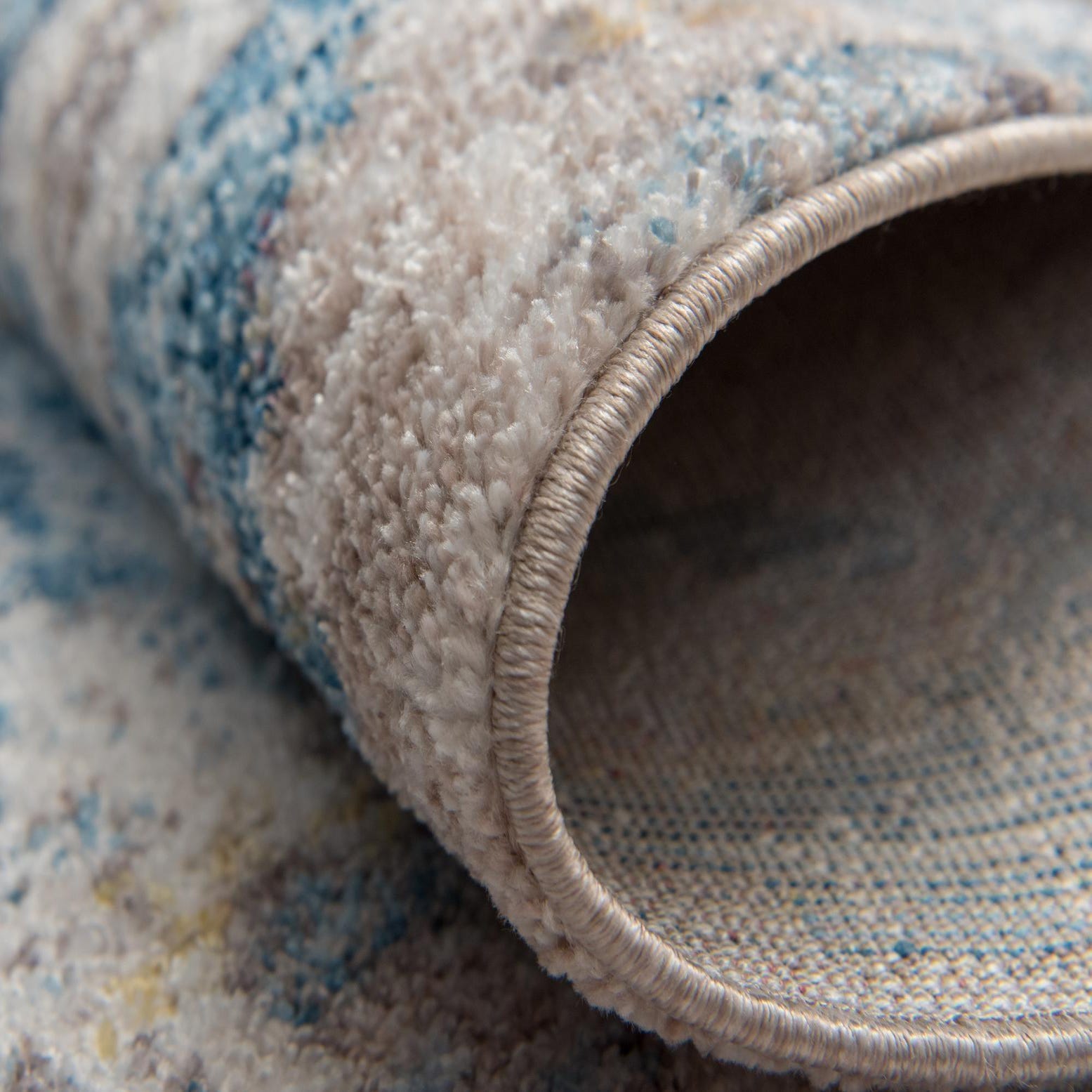 Primary color is Light Blue. Colors in this rug include: Light Blue, Beige, Blue, Brown, Gold, Gray, Ivory, Navy Blue, Orange, Red, Violet.