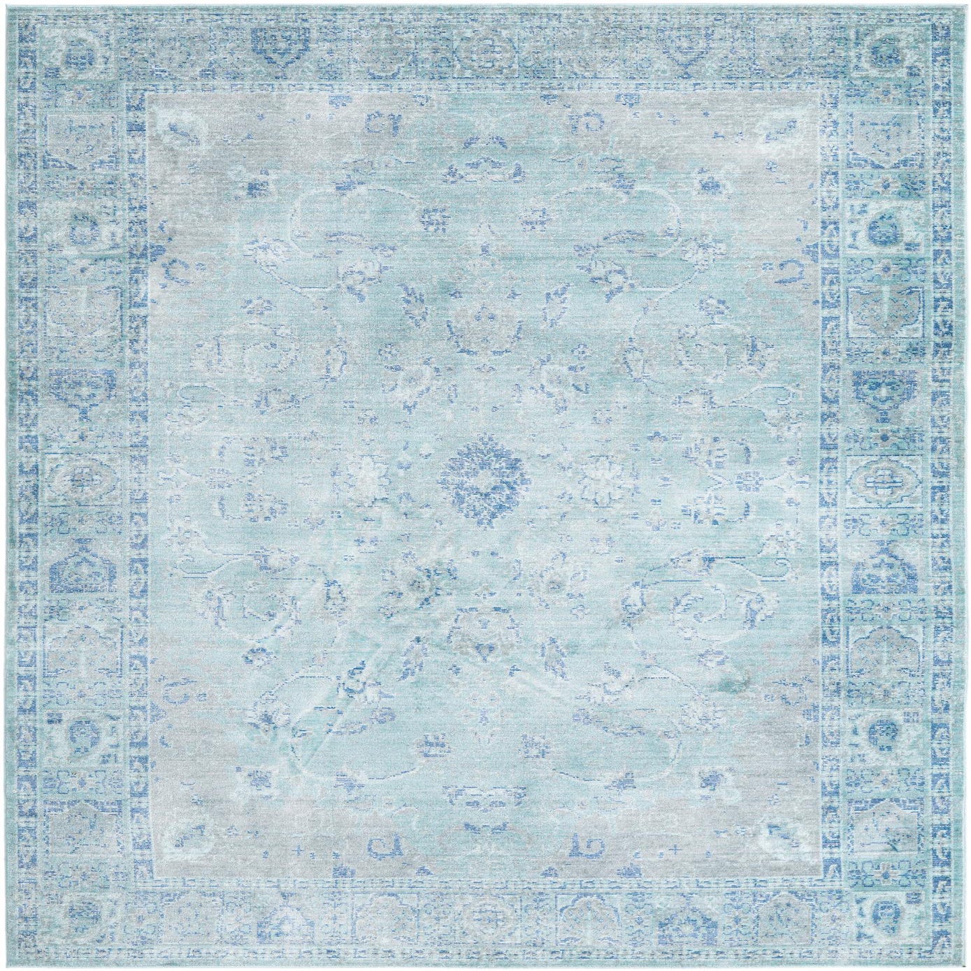 Primary color is Light Blue. Colors in this rug include: Light Blue, Blue, Ivory, Navy Blue.
