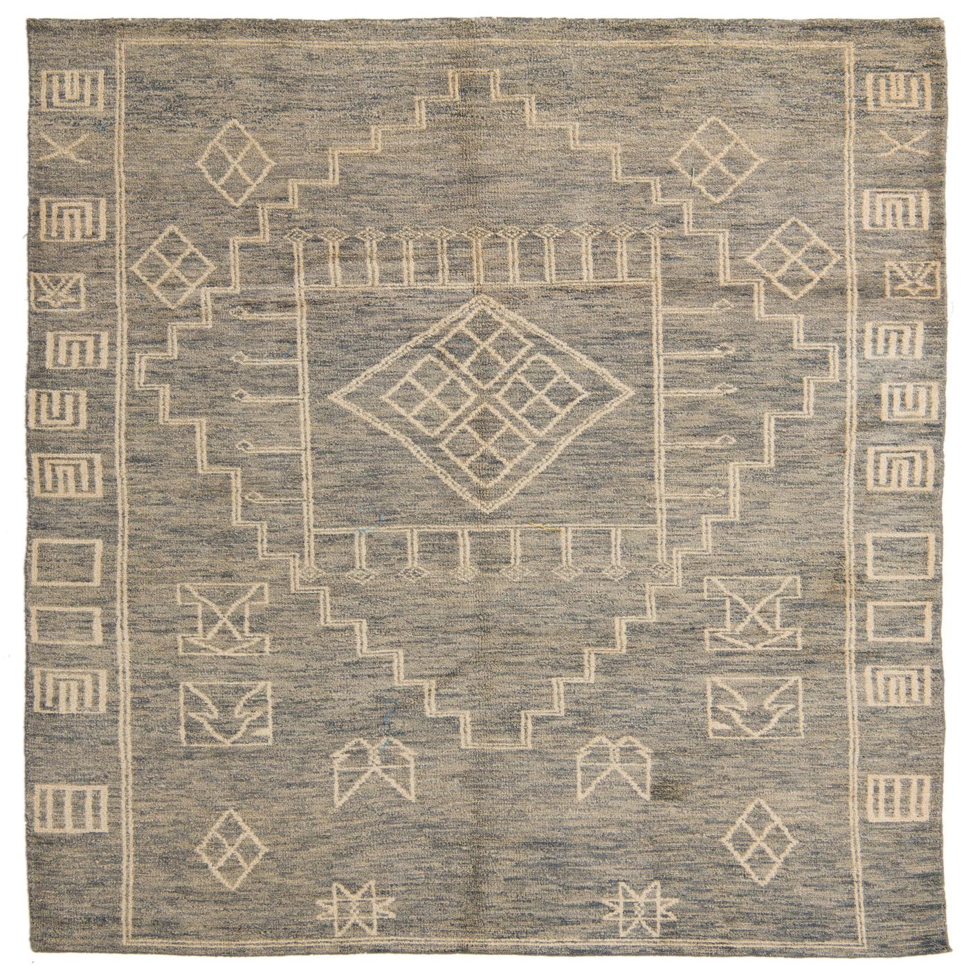 The texture of the wool provides a soft underfoot experience while maintaining the integrity of the rug's structure. Its symmetrical arrangement and clean lines lend themselves to modern and contemporary settings, while the cultural heritage of the pattern can also enhance eclectic or global decor themes.