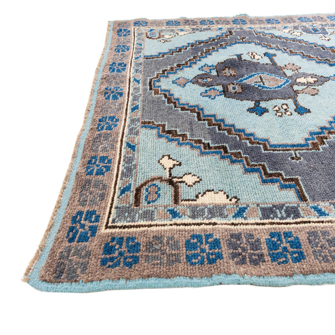 Primary color is Light Blue. Colors in this rug include: Light Blue, Blue, Brown, Ivory, Gray.