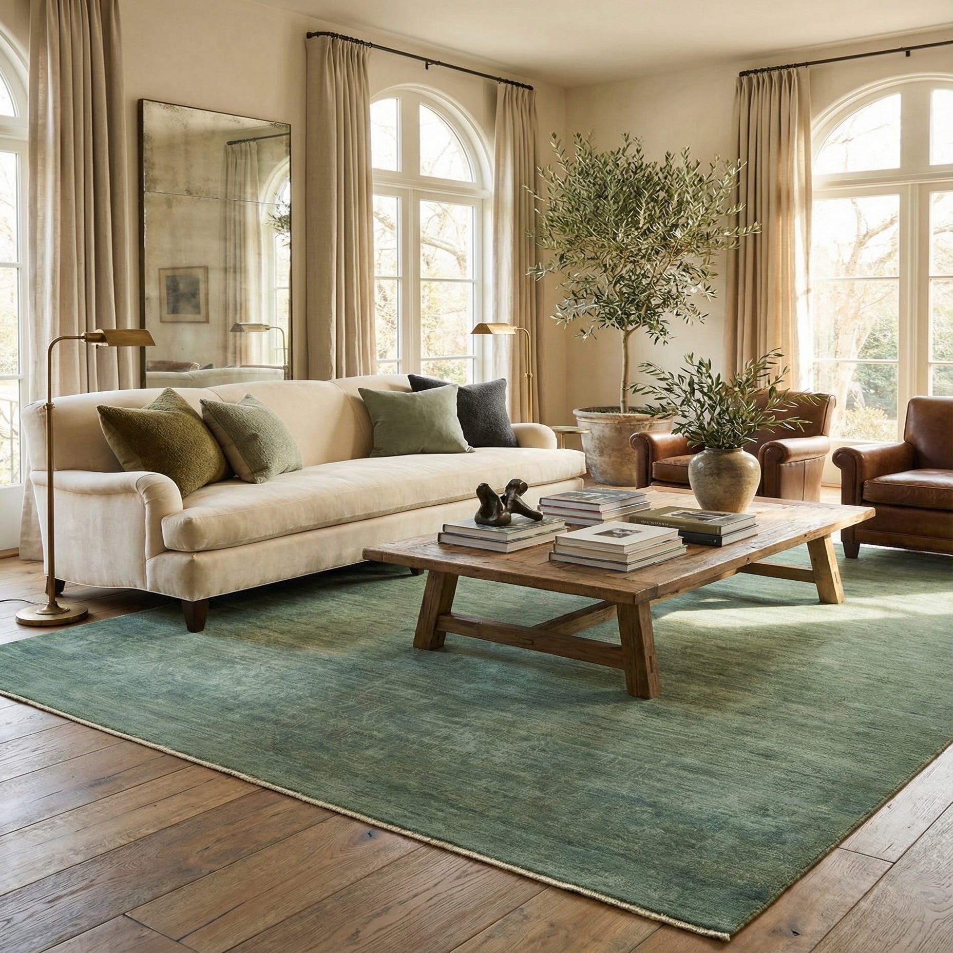 The Over-Dyed Ziegler rug's understated design allows it to seamlessly integrate into a variety of interior styles, from contemporary to traditional settings. Its serene color palette would complement interiors with natural light, enhancing spaces such as living rooms, studies, or bedrooms. It can serve as a refined anchor for furniture in minimalist decors or as a soothing counterbalance in more vibrantly decorated rooms. This rug is sure to enrich any home with an effortless, cultivated appeal.