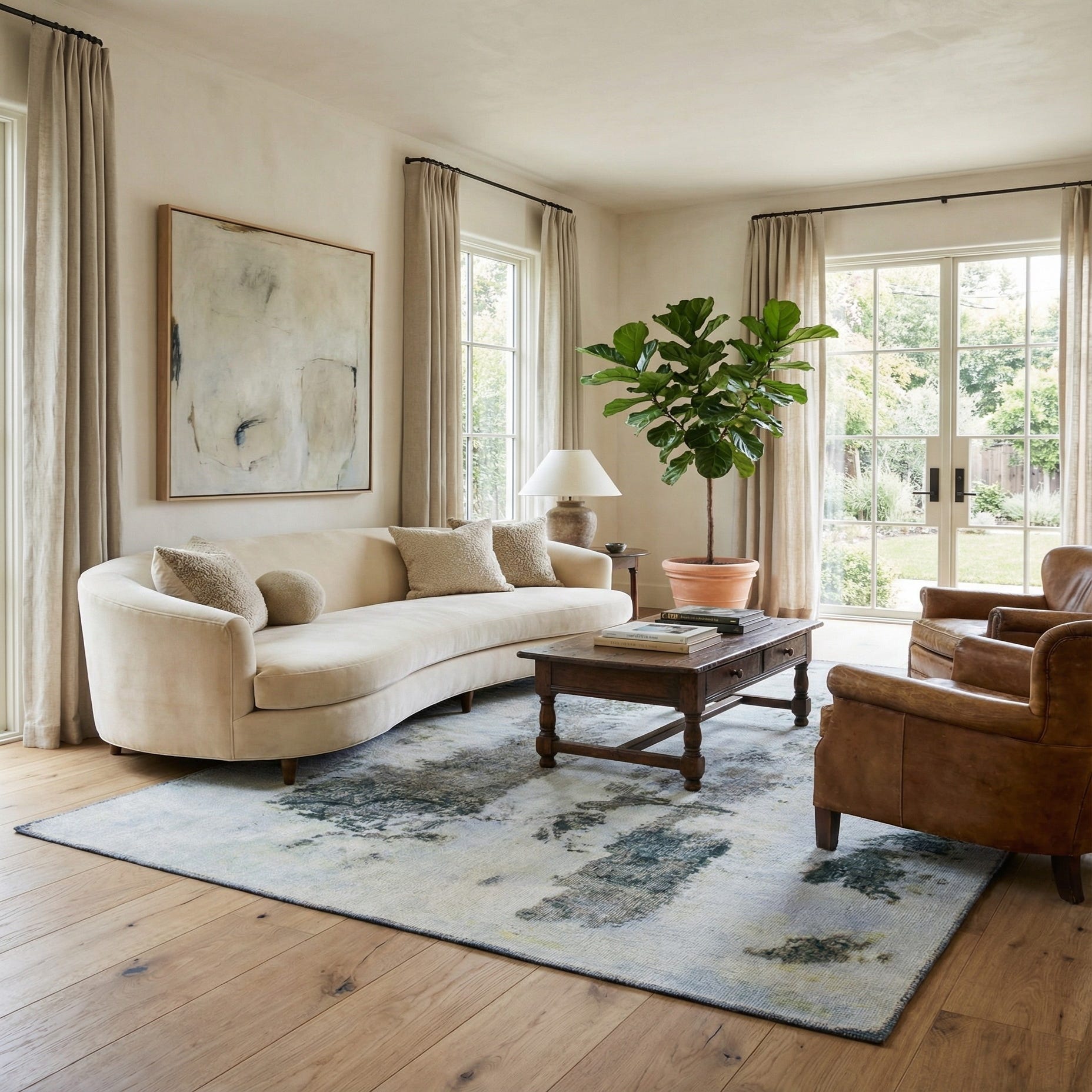 Ideal for an array of interior design scenarios, this rug would sit comfortably in a modern minimalist setting, complementing clean lines and neutral tones with its muted yet rich colors. It would also serve as an understated focal point in a more eclectic or bohemian space, where its vintage-inspired aesthetic and soothing color palette can harmonize with a mix of textures and patterns. Similarly, in traditional or transitional decors, this piece could provide a subtle nod to classic design while maintaining a fresh, updated look.