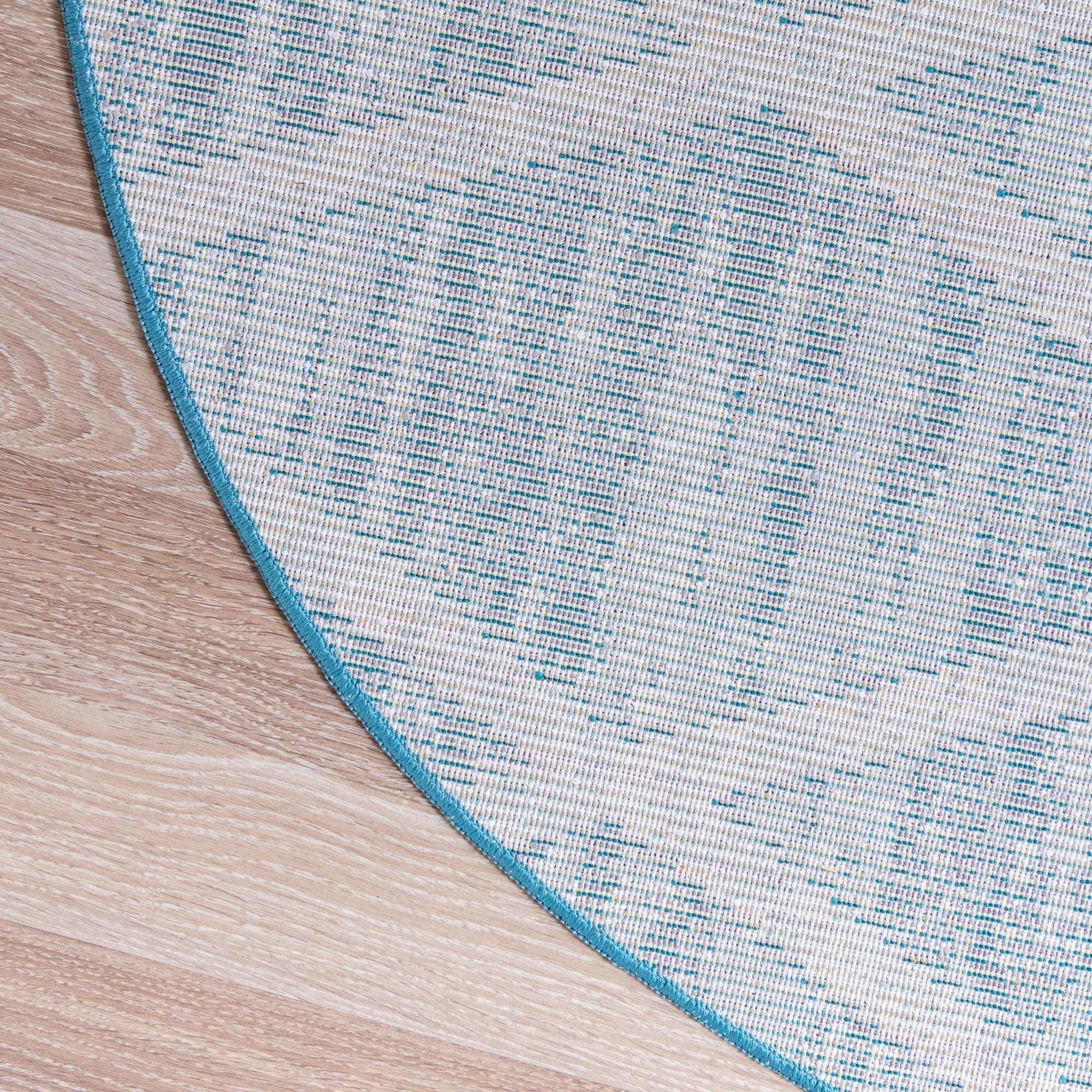 Machine-made from 100% polypropylene, the rug has a low, dense pile that feels smooth and slightly cushioned underfoot. The construction holds the pattern clearly while the washed coloring masks wear from everyday use. Place it beneath a round dining table, to define a cozy reading nook or to anchor a seating area in a living room; it also complements neutral, coastal or modern farmhouse interiors where cool blues and soft ivories are desired.