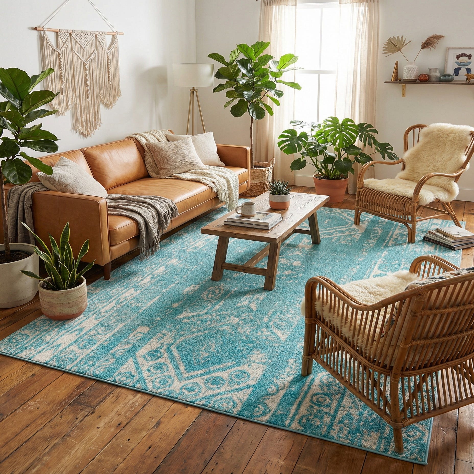 Machine-made from 100% polypropylene, the low-profile pile feels soft underfoot while holding a resilient, slightly dense texture that sits well beneath furniture. This rug works well anchoring a seating area in a coastal or transitional living room, adding a light, airy touch to a bedroom, or grounding a casual dining space with whitewashed or light wood furniture. Pair it with linen upholstery, rattan accents, or matte metal fixtures for a relaxed, cohesive scheme.