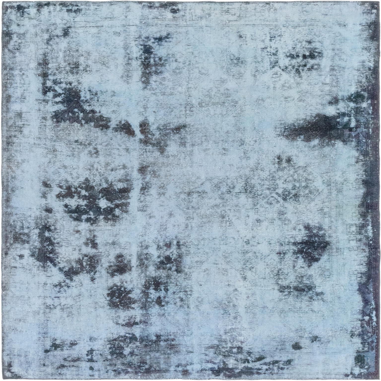 A 7x10 rectangular light blue and dark blue abstract Persian rug with a vintage distressed look.