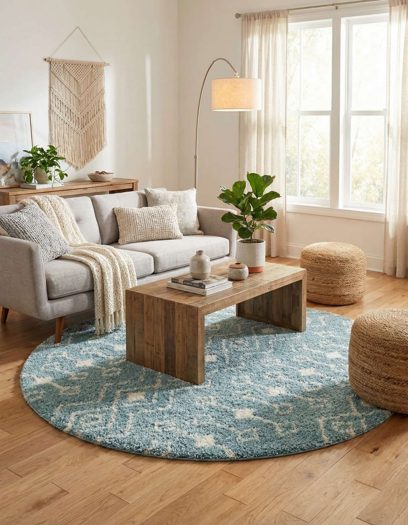 Machine-made from 100% polypropylene, the shag pile feels plush and cushiony underfoot, with a textured surface that adds subtle depth and warmth to a room. Its relaxed, casual profile pairs well with coastal, cottage, or modern-bohemian interiors—use it to anchor a conversation area, soften hardwood or tile in a bedroom or nursery, or center a round dining or breakfast nook. Combine with light wood furniture, crisp whites, and natural fibers to enhance the soft, breezy palette.