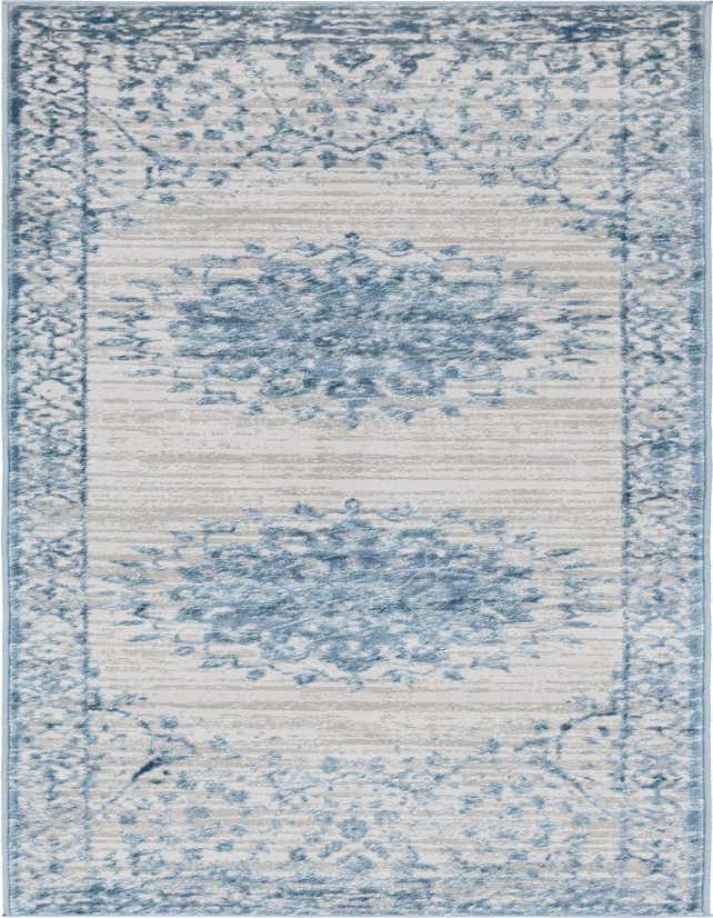 Primary color is Light Blue. Colors in this rug include: Light Blue, Beige, Ivory.