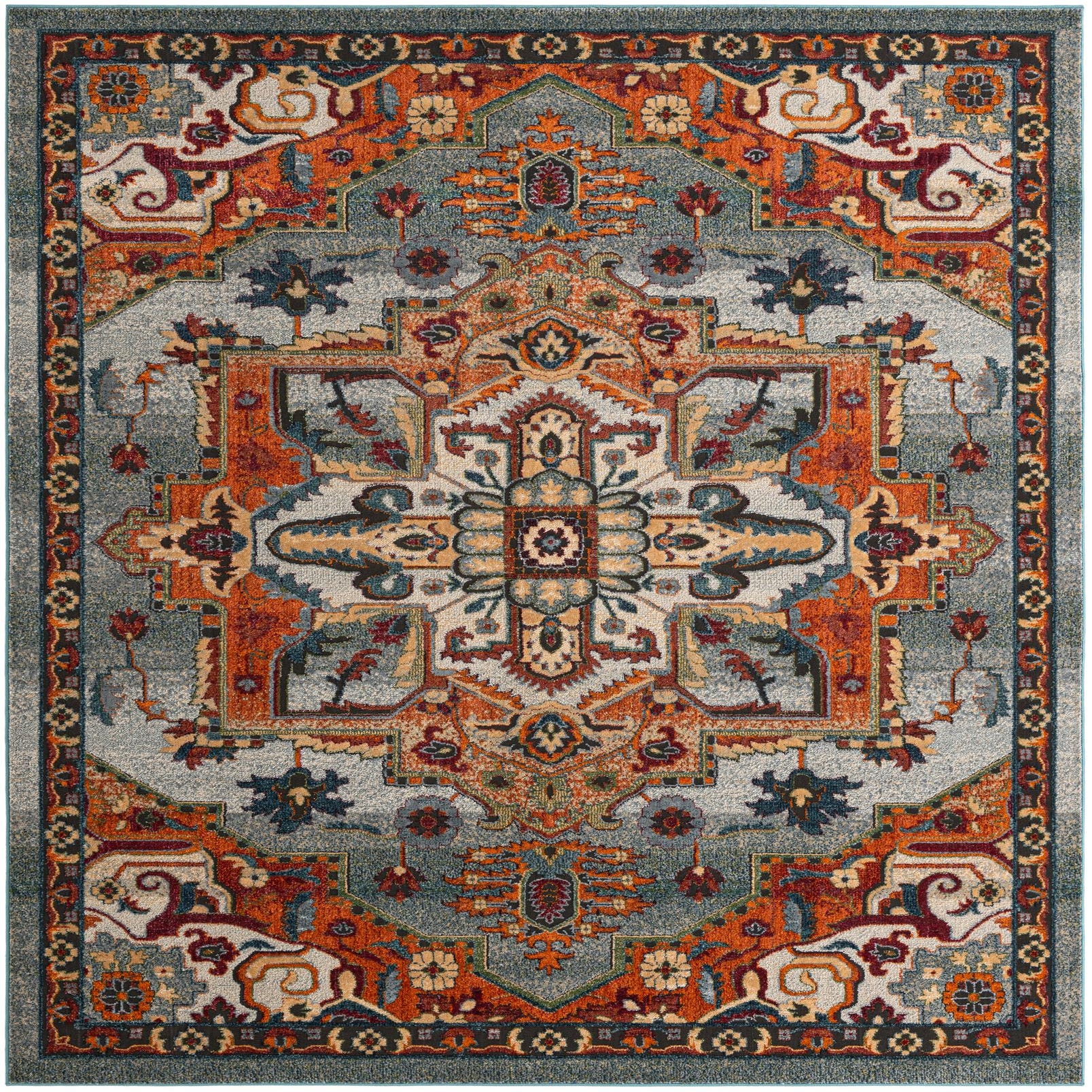 An 8x10 rectangular Isabella rug featuring a central medallion and intricate floral patterns in shades of blue, orange, red, and cream.