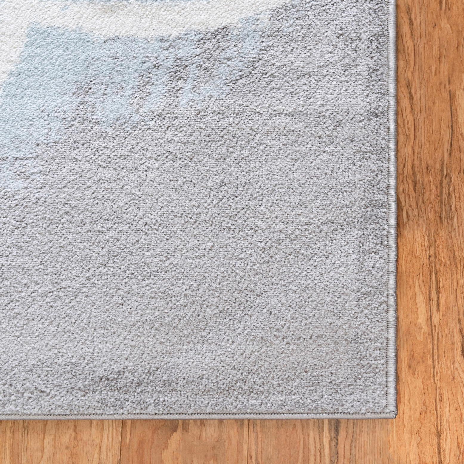 This colorway works well in coastal, modern, or transitional interiors. Use it to anchor a seating area beneath a sofa and coffee table, place it under a bed to add a soft graphic layer, or set it in a home office or entry to bring pattern and cool tones to streamlined furnishings. Pair with light woods, ivory linens, and brushed-metal accents to complement the light blue, gray, and ivory palette.