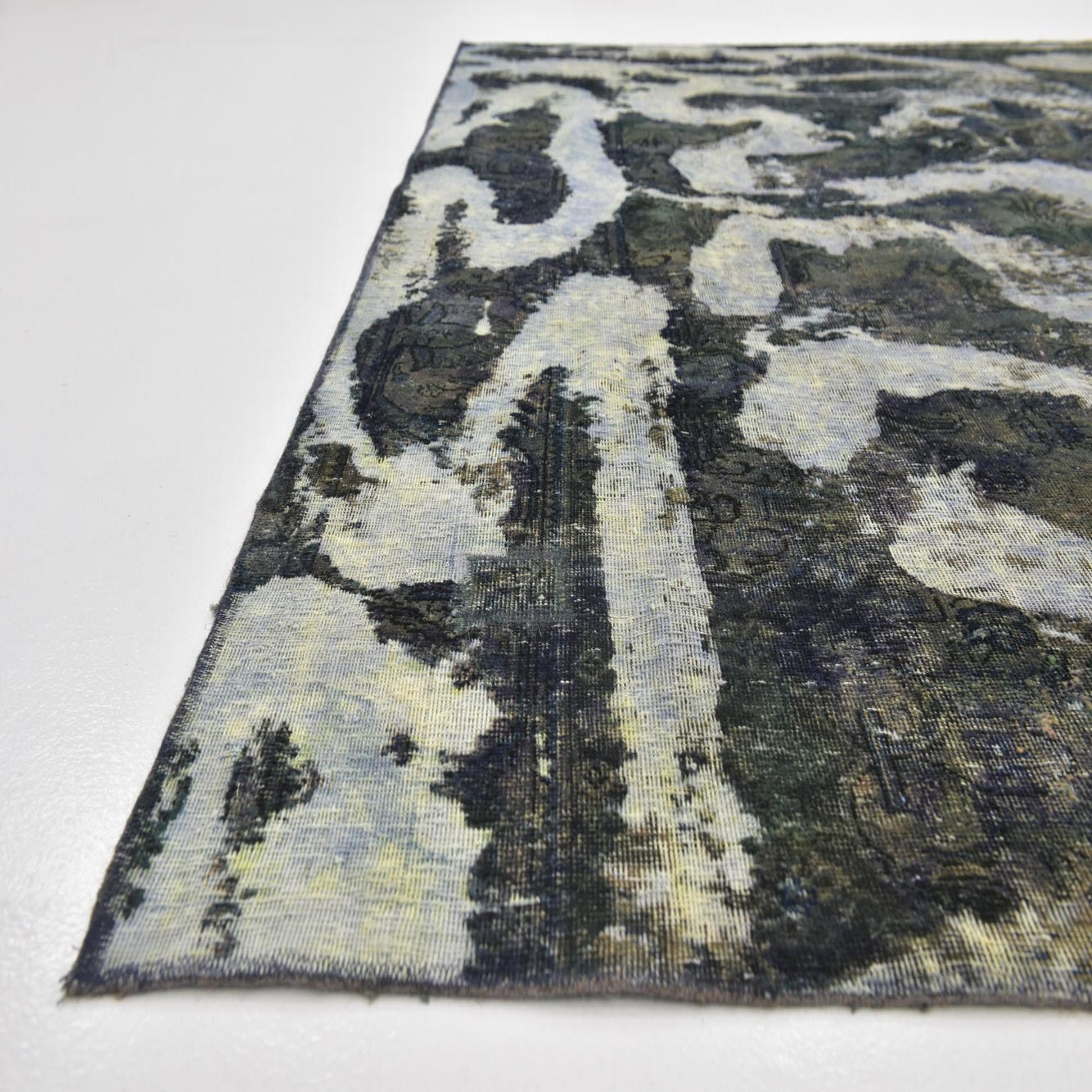 This Persian Ultra Vintage rug is an antique Persian Rug that has been washed, over-dyed, and then shaved down to a low pile. Look at the detail pictures to fully appreciate the uniqueness of this piece.