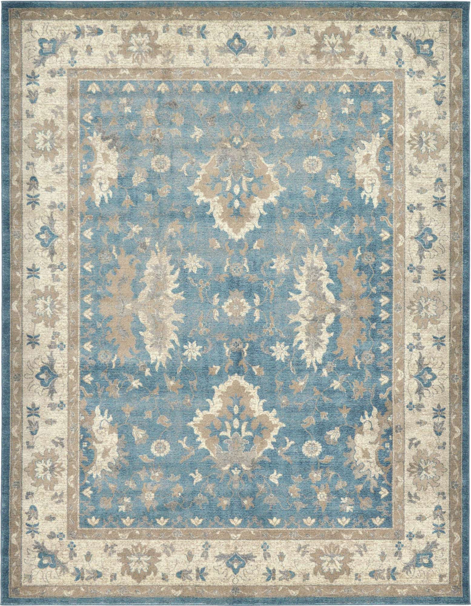 Primary color is Light Blue. Colors in this rug include: Light Blue, Gray, Ivory.