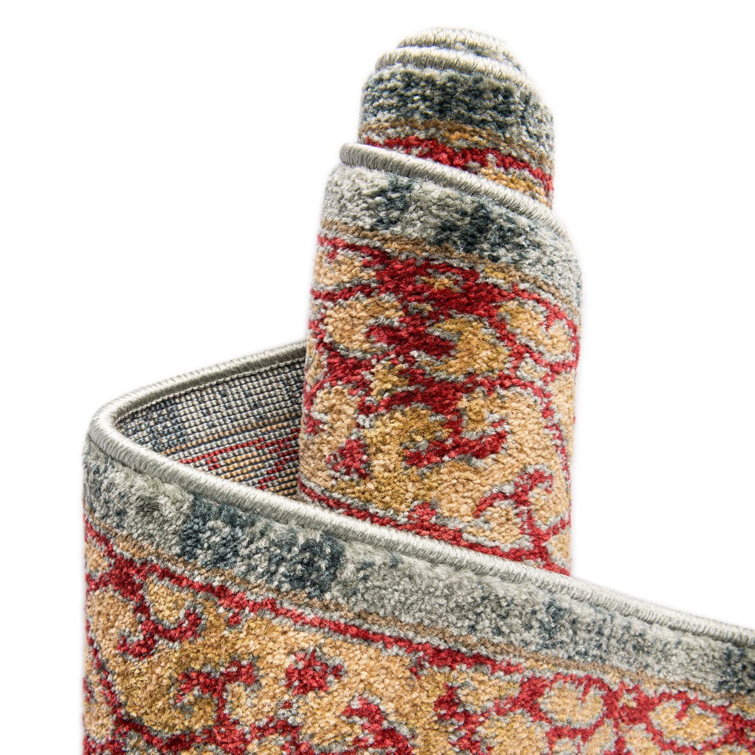 Machine-made in 100% polypropylene, the rug has a low, even pile that feels smooth and slightly cushioned underfoot while maintaining crisp detail. It works well anchoring a living-room seating group or grounding a dining area, and pairs naturally with warm wood furniture, navy accents and brass or matte metal lighting. The palette and pattern suit classic, transitional or cottage-inspired interiors where a composed, layered look is desired.