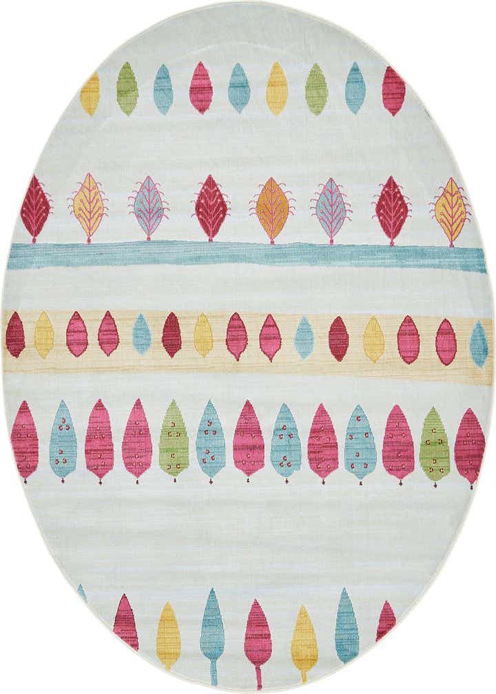 Primary color is Light Blue. Colors in this rug include: Light Blue, Blue, Green, Red, Teal, Pink, Yellow.