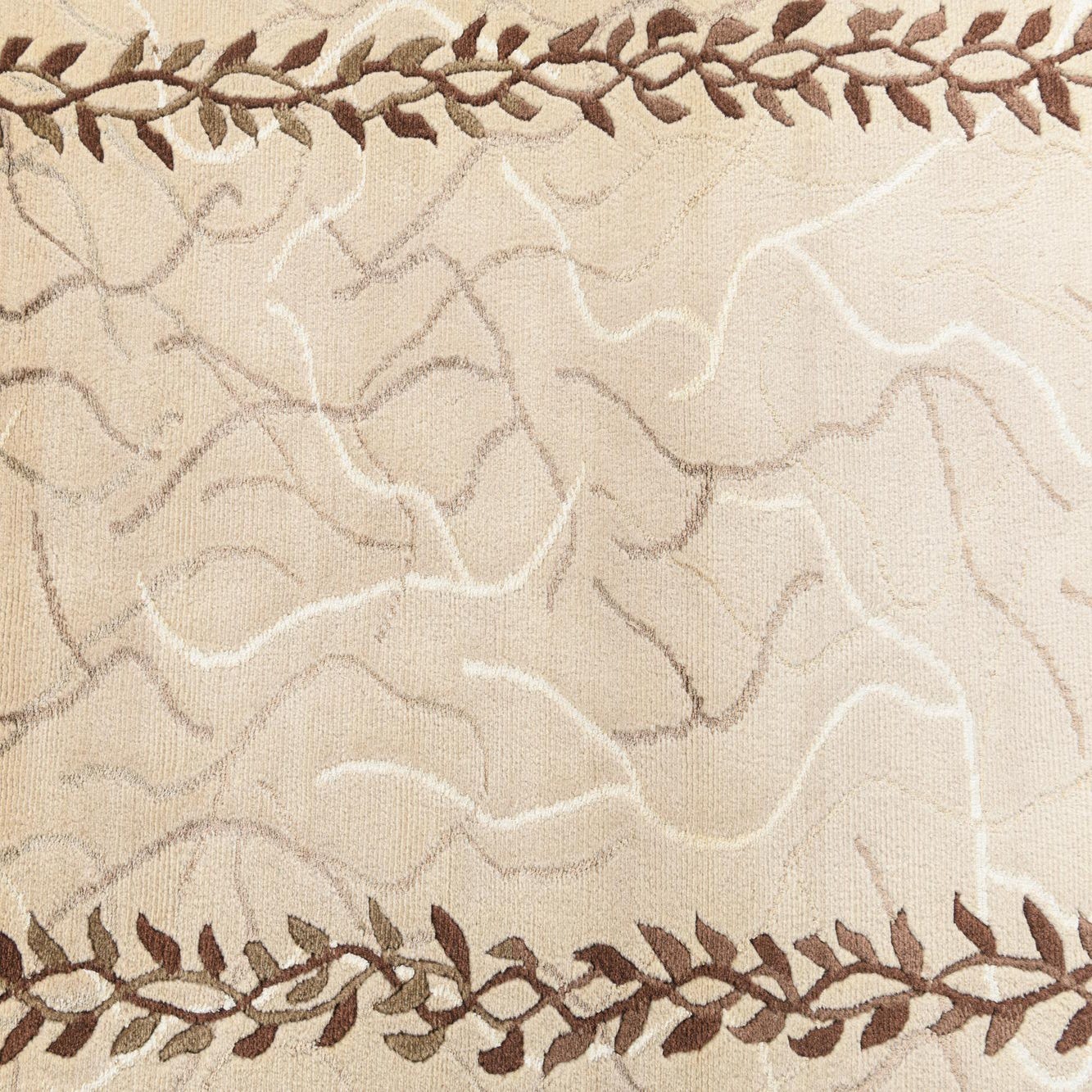 A 10 ft Darya runner rug in browns and tans with a modern oriental leaf border pattern.