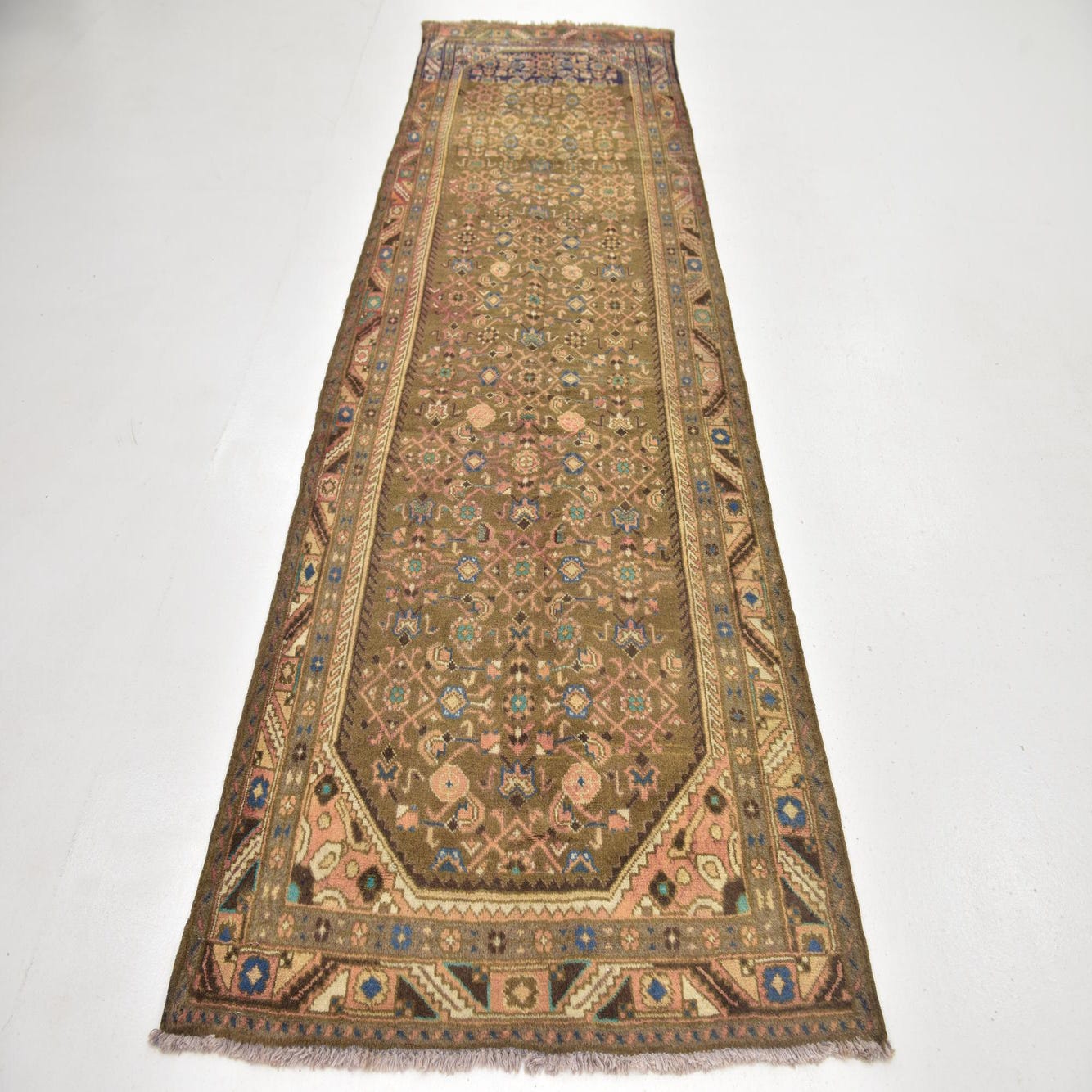 3' 7 x 10' 3 Hand Knotted Hamedan Persian Wool Runner Rug