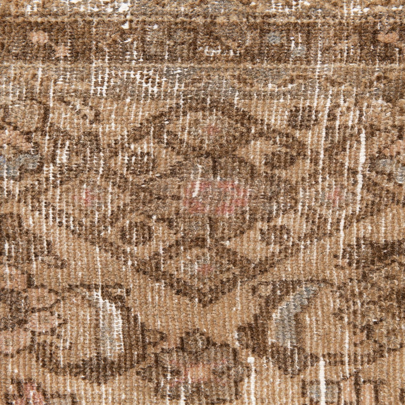 Primary color is Light Brown. Colors in this rug include: Light Brown, Brown, Ivory, Rust Red.