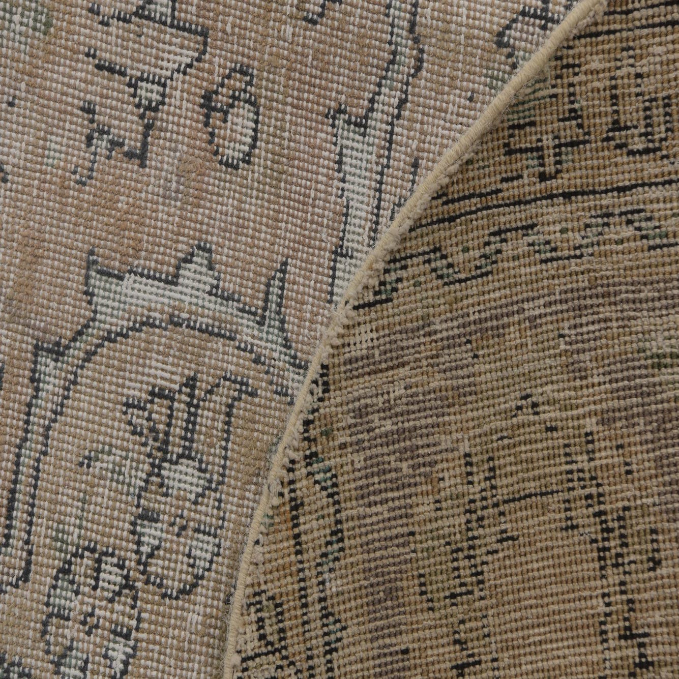 Primary color is Light Brown. Colors in this rug include: Light Brown, Black, Brown, Ivory, Green.