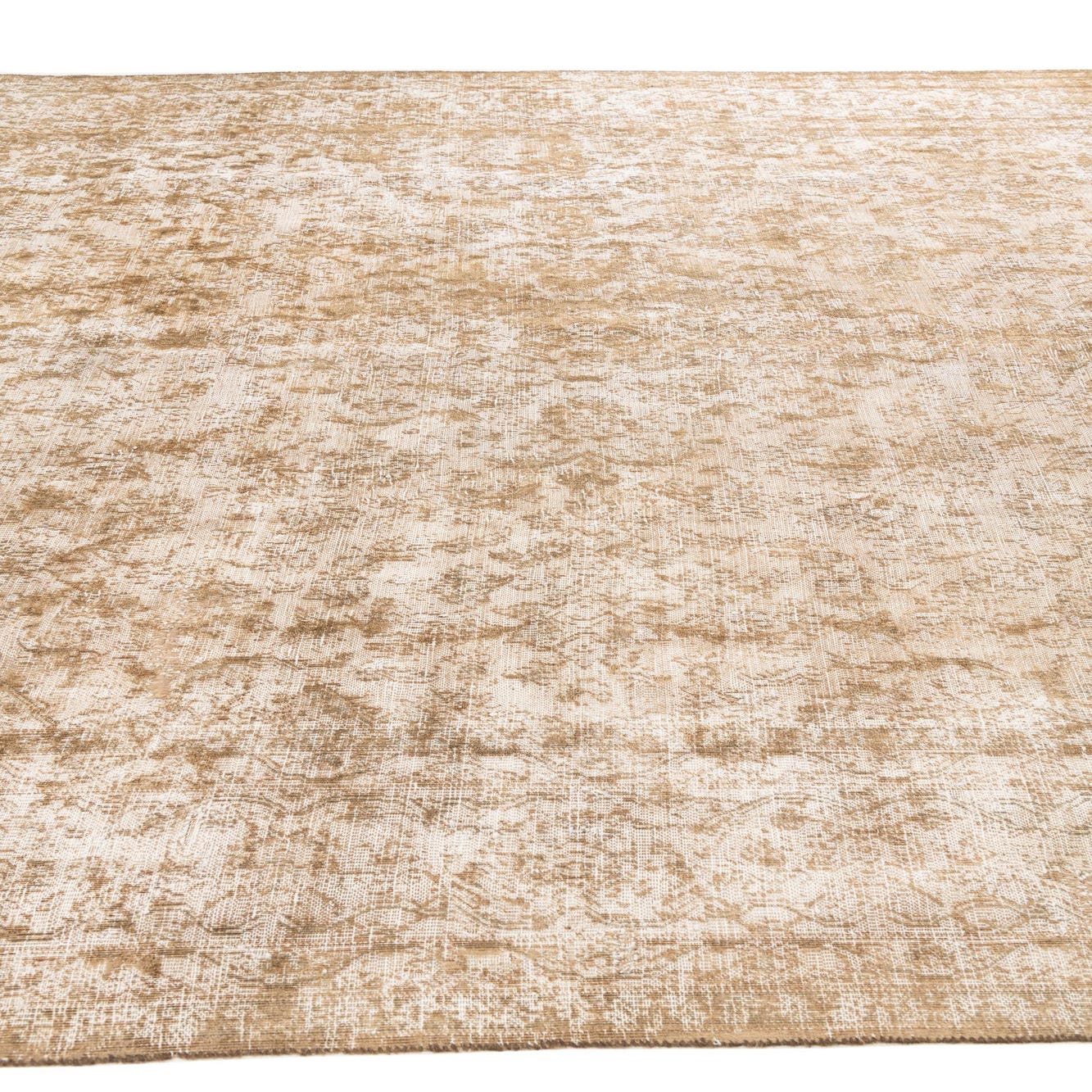 A 10x12 rectangular Ultra Vintage wool rug in shades of brown and tan, featuring a distressed Persian pattern.