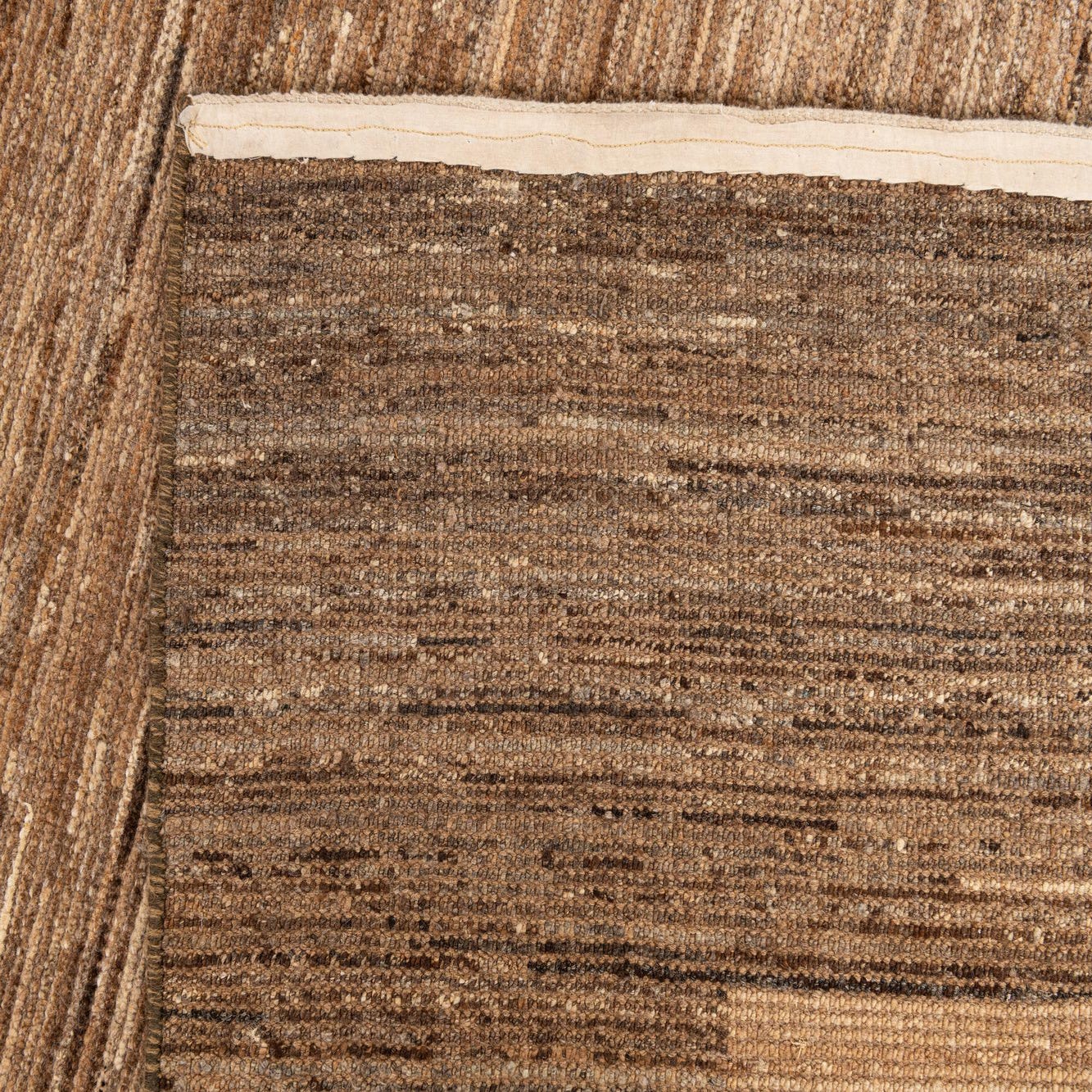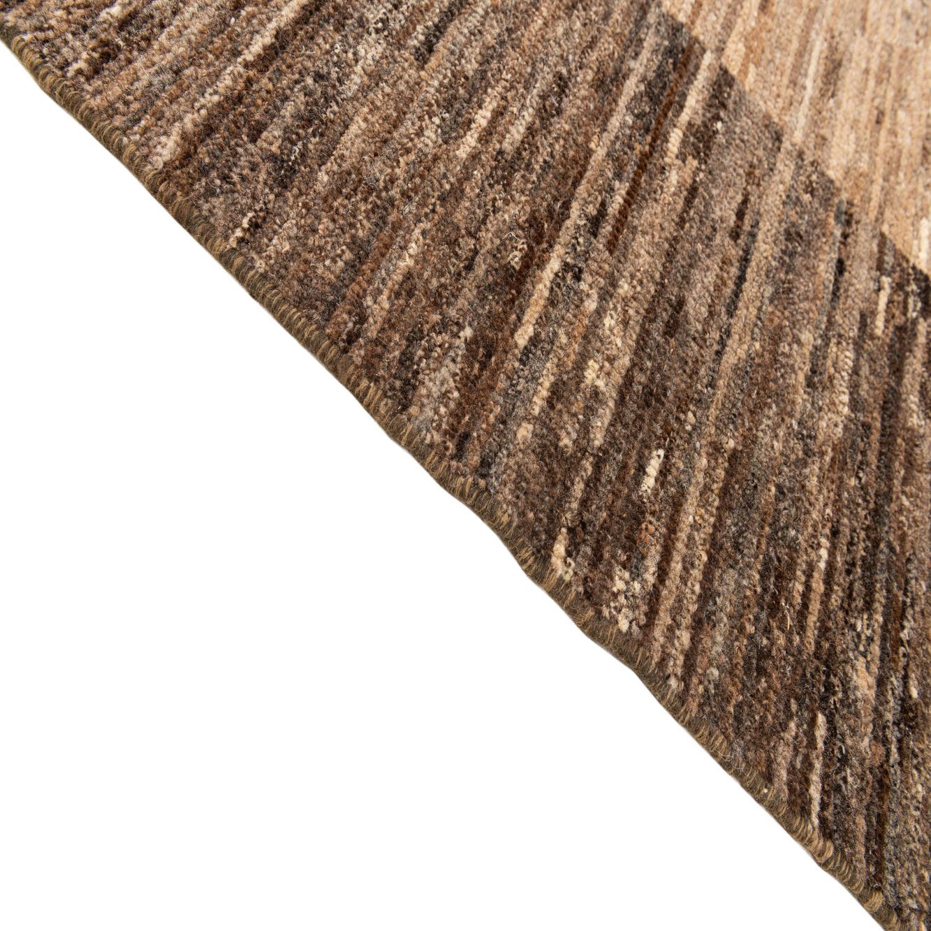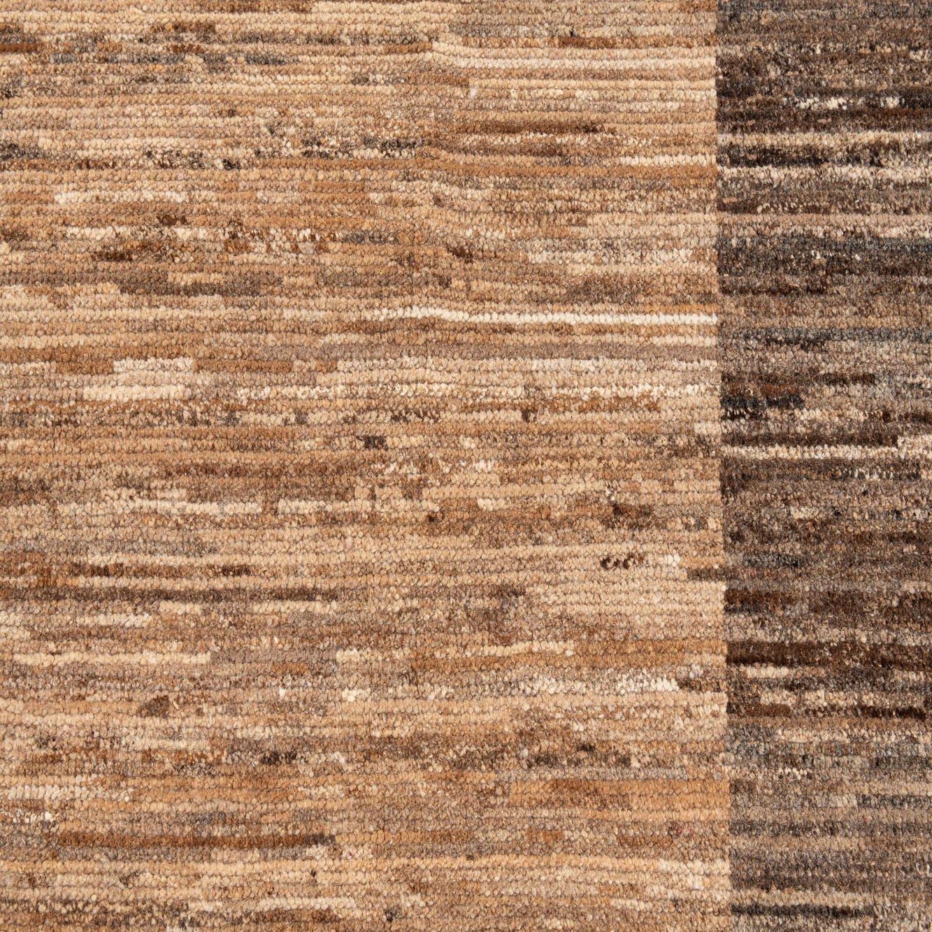 A 10x13 rectangular Modern Ziegler rug featuring a light brown center and a darker brown border, made from hand-spun wool.