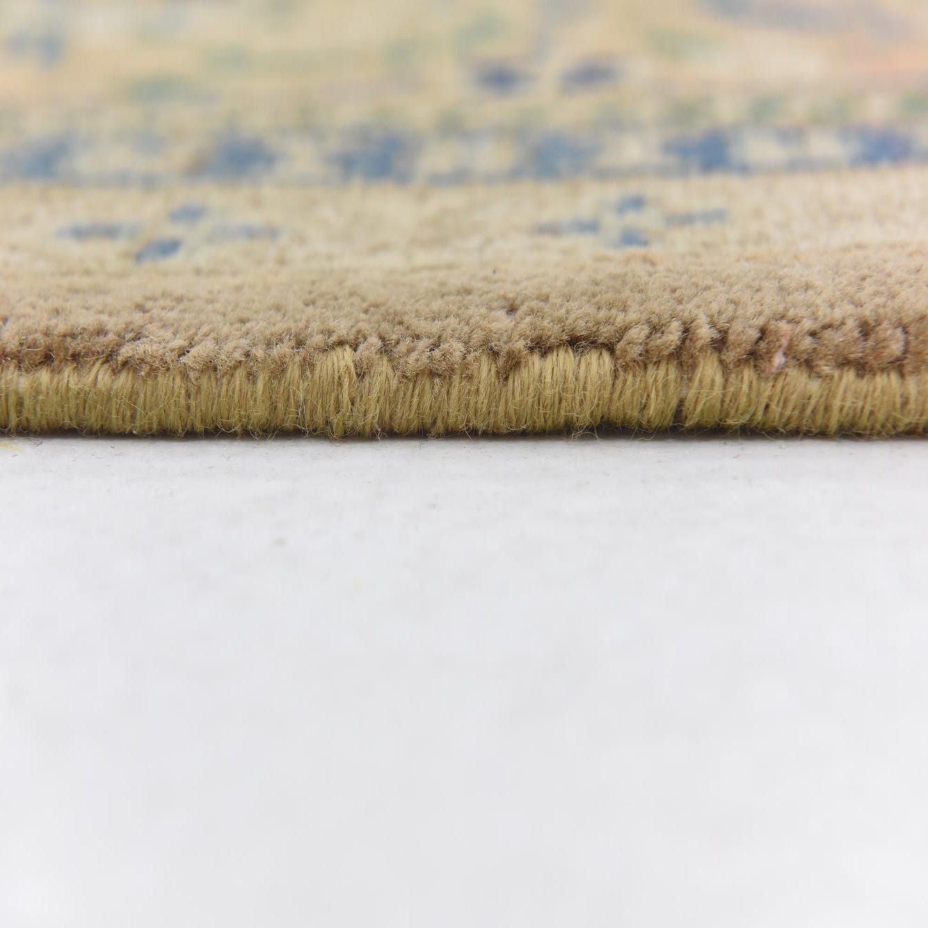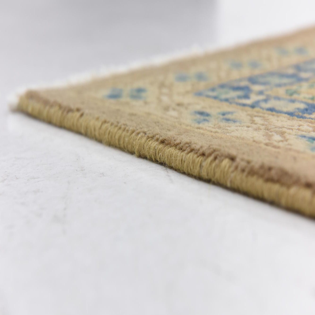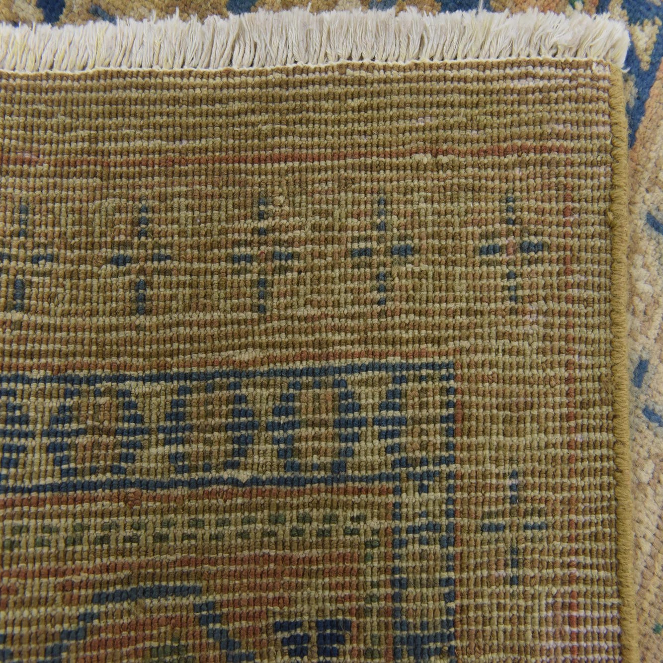 Primary color is Light Brown. Colors in this rug include: Light Brown, Beige, Blue, Ivory, Navy Blue, Peach.