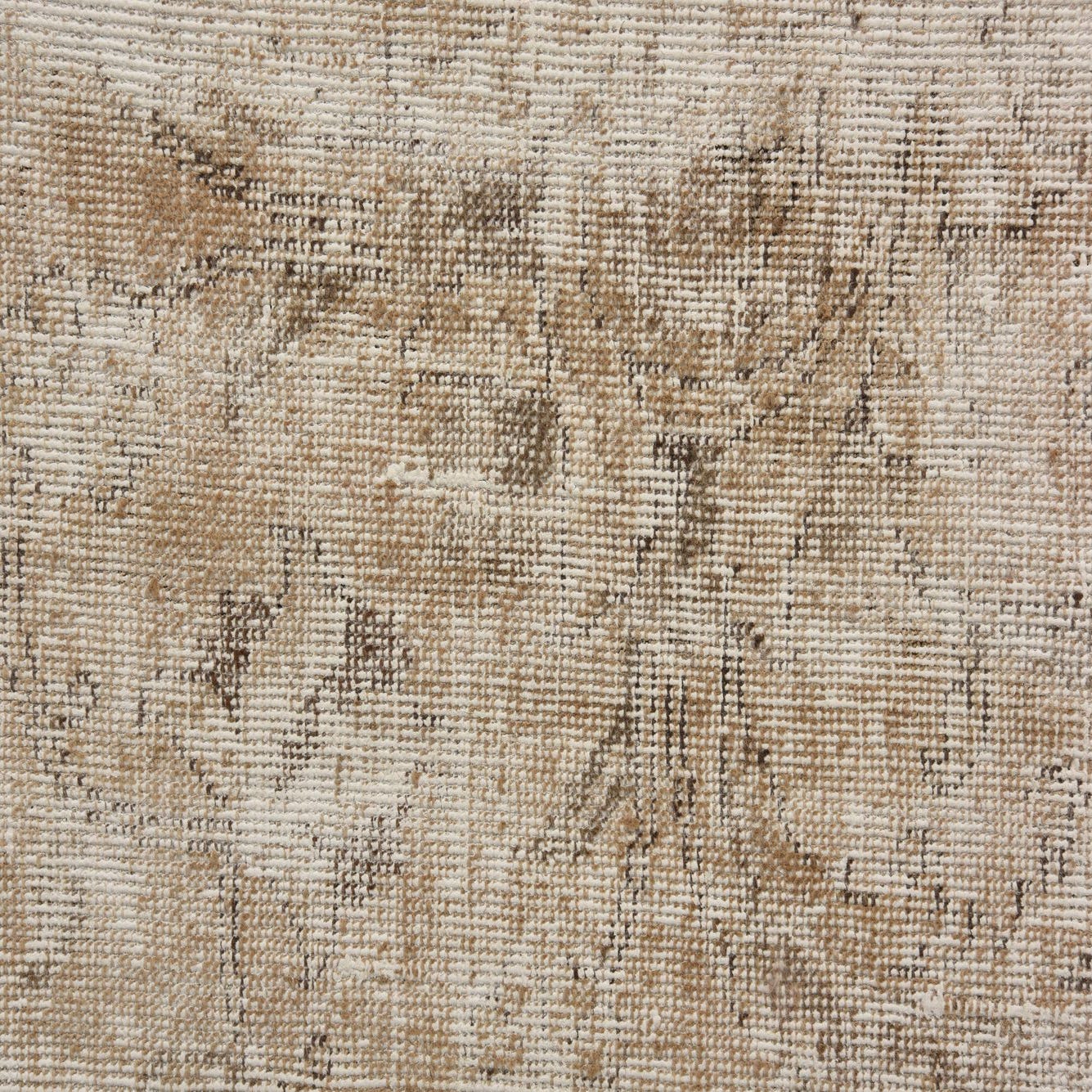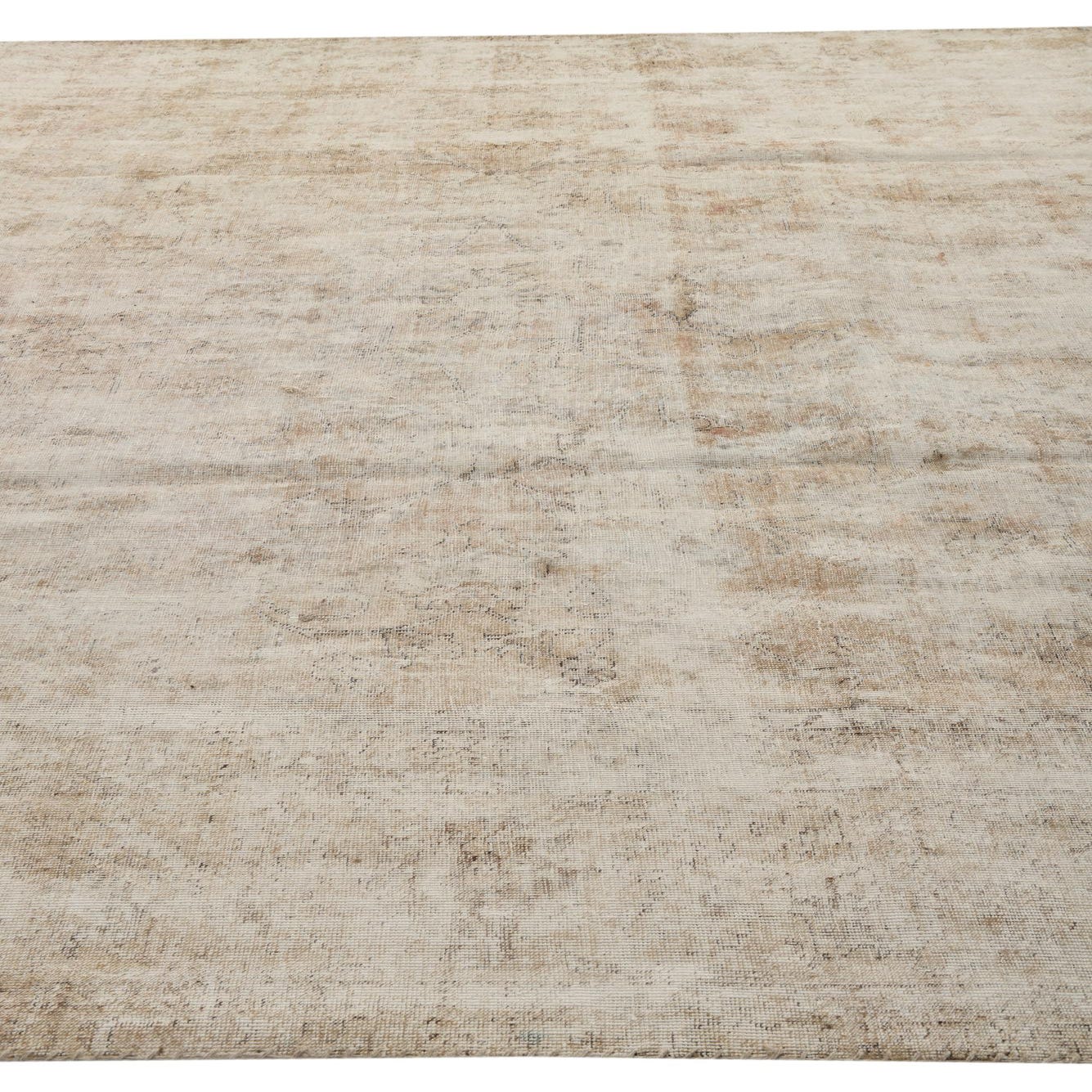 A softly distressed, vintage-inspired field in light brown forms the foundation of this hand-knotted wool rug. Brown accents create a gently mottled pattern across the surface while ivory highlights lift the overall palette, producing a warm, lived-in look without busy ornamentation. The design feels open and understated, allowing other elements in the room to take center stage while adding subtle visual texture.