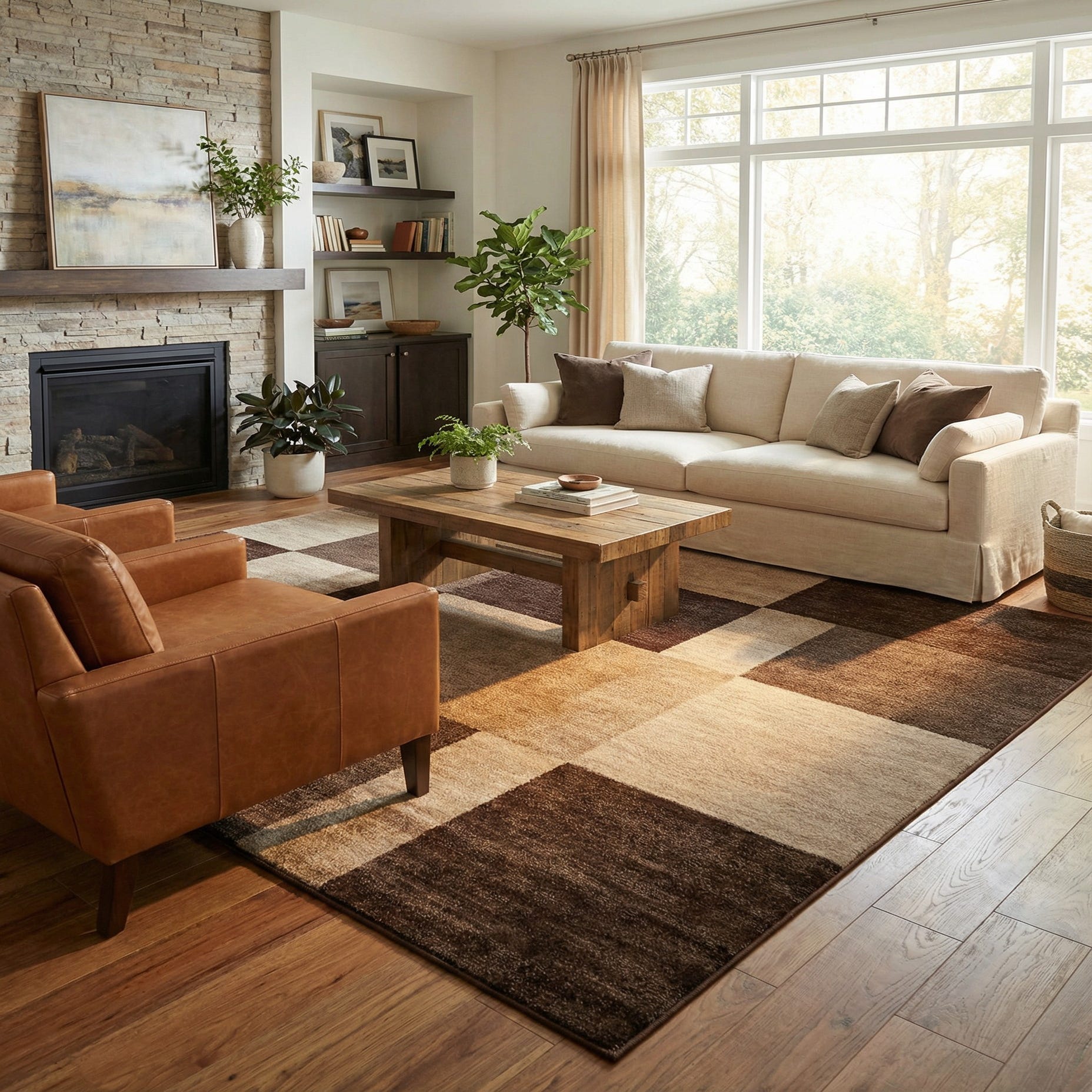 Primary color is Light Brown. Colors in this rug include: Light Brown, Beige.
