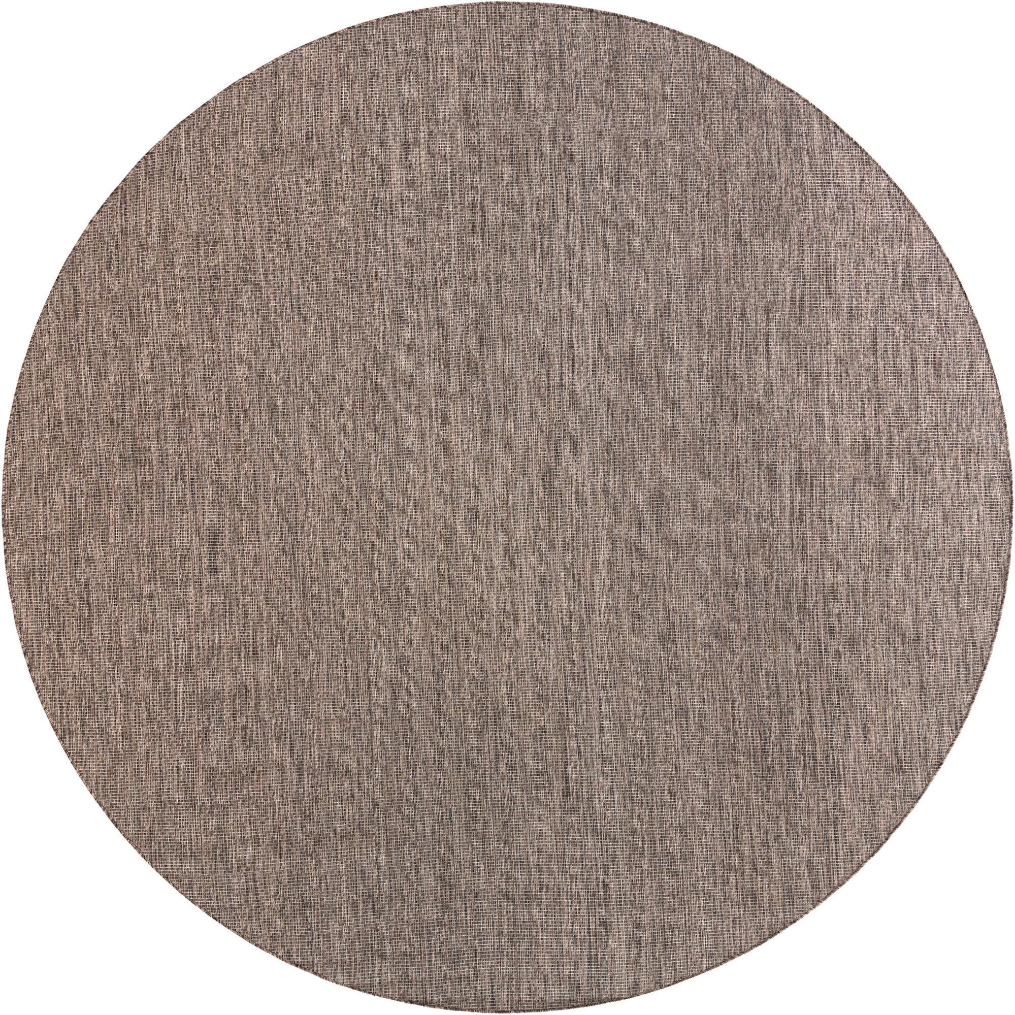 The Outdoor Solid collection presents a versatile 11 Ft Round rug crafted through machine-woven techniques, ensuring a durable and consistent texture. This piece is constructed using 100% polypropylene, lending it a robustness suitable for high-traffic areas and outdoor settings. The rug showcases a solid pattern, predominantly light brown in background color with subtle brown interwoven hues, giving it a natural and earthy tone that complements a variety of settings.