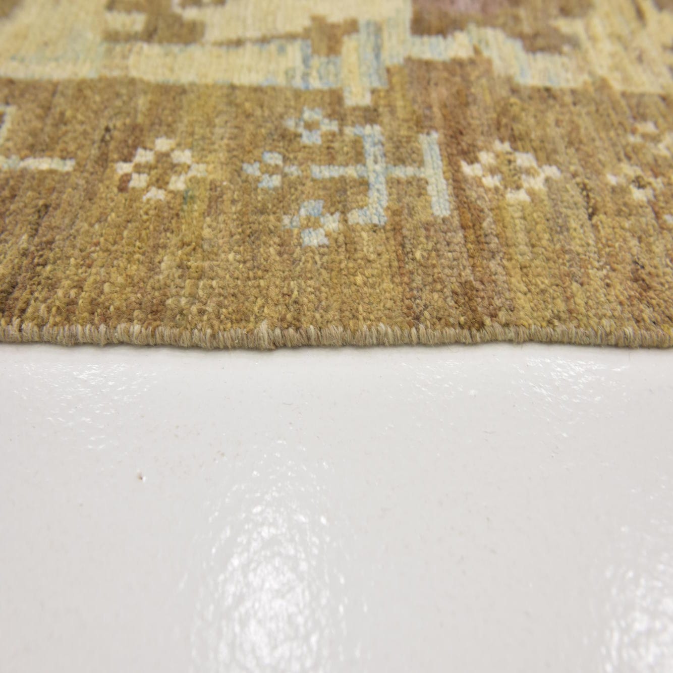 Primary color is Light Brown. Colors in this rug include: Light Brown, Ivory, Olive, Peach, Cream, Brown.