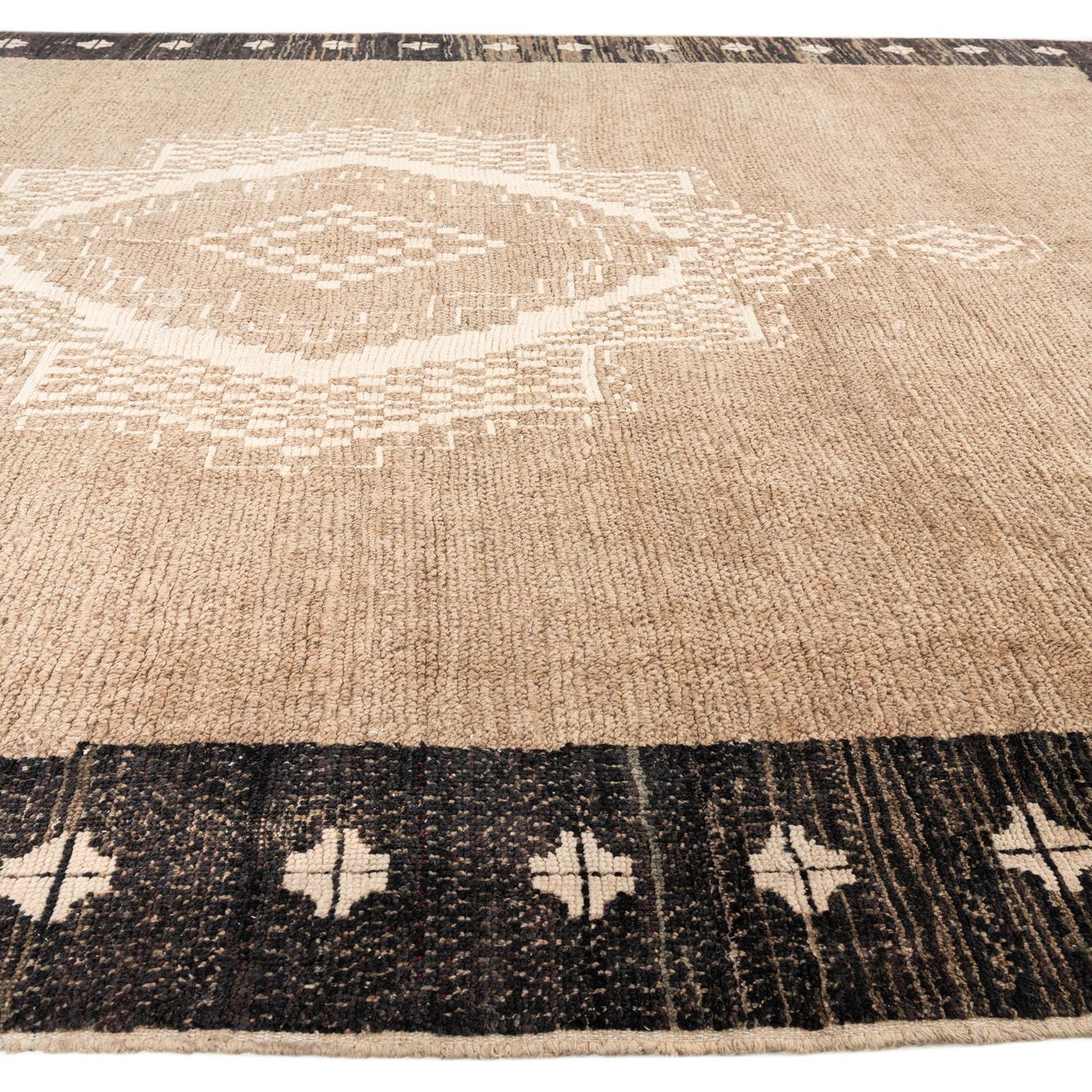 Primary color is Light Brown. Colors in this rug include: Light Brown, Brown, Ivory.