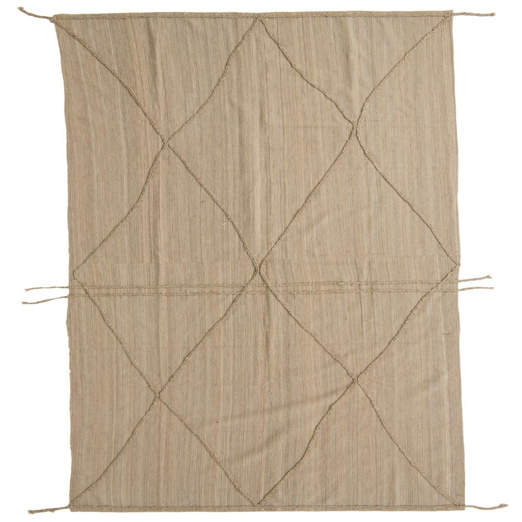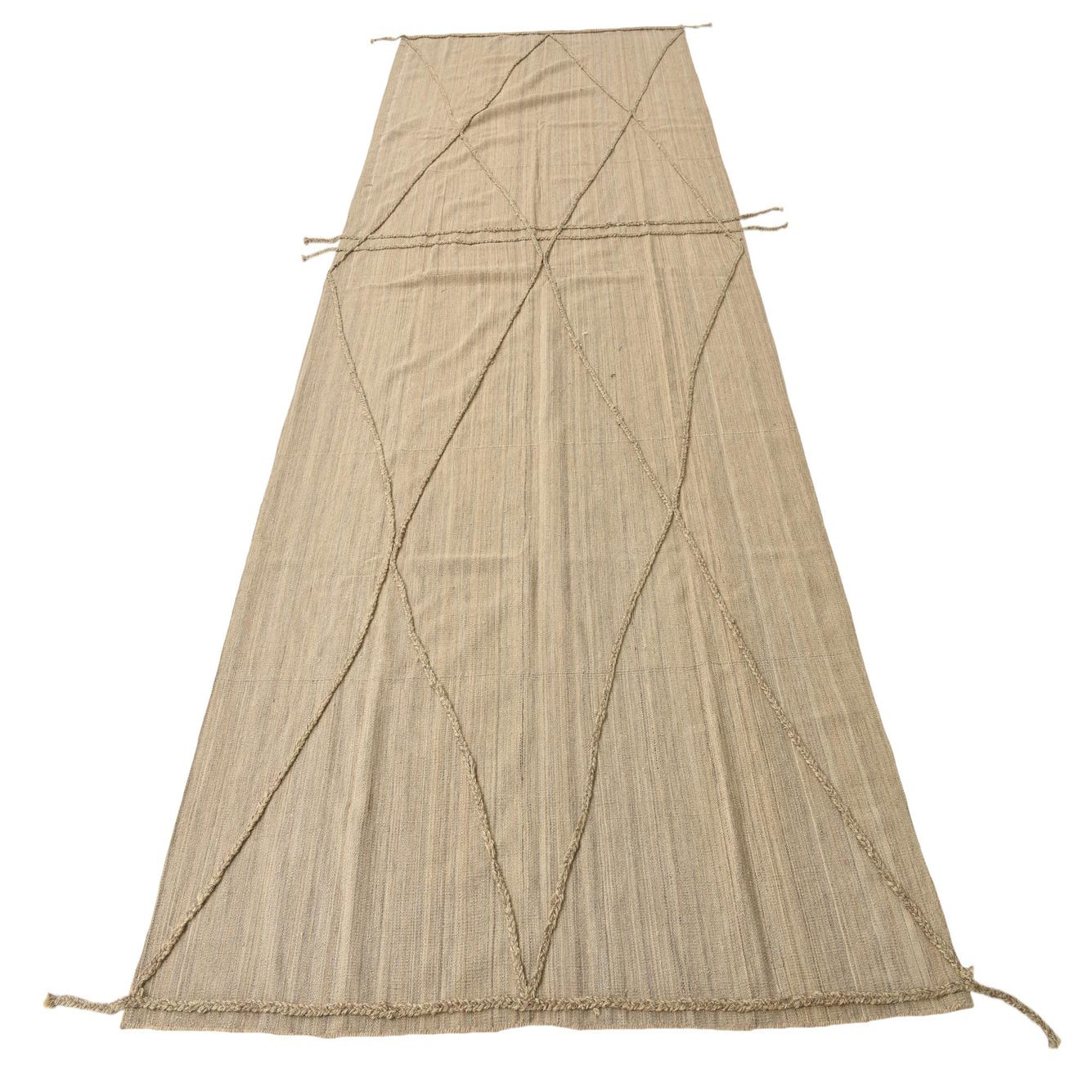 A 13 ft runner rug from the Moroccan Collection, featuring a tan and brown wool shag pile with a modern tribal diamond pattern.