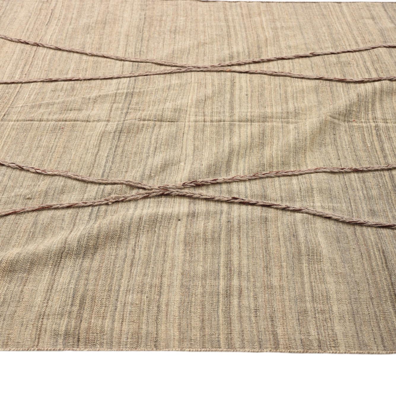 A 17 ft runner rug in shades of brown and tan, featuring a tribal diamond pattern made from raised shag lines, perfect for a hallway.