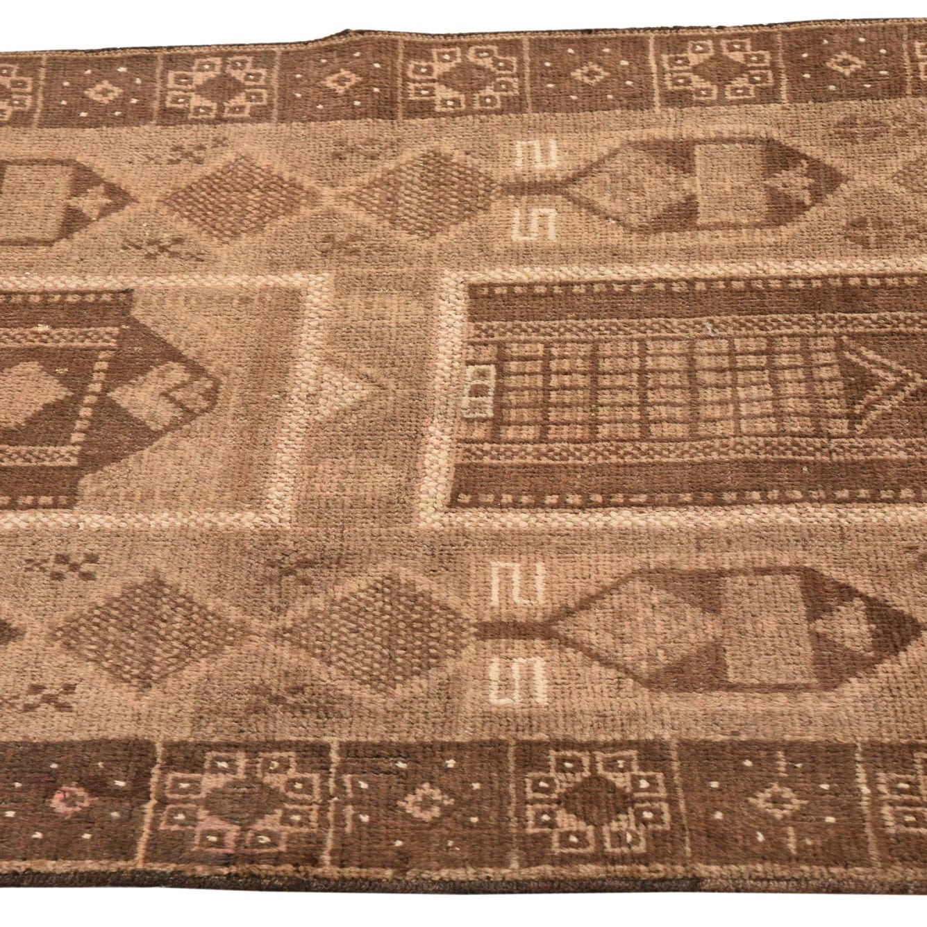 Primary color is Light Brown. Colors in this rug include: Light Brown, Brown, Rust Red, Ivory.
