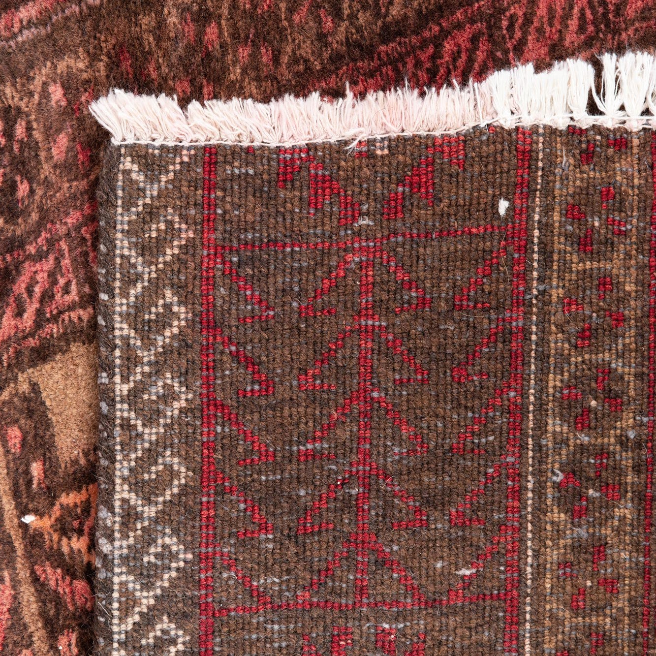 Primary color is Light Brown. Colors in this rug include: Light Brown, Brown, Rust Red.