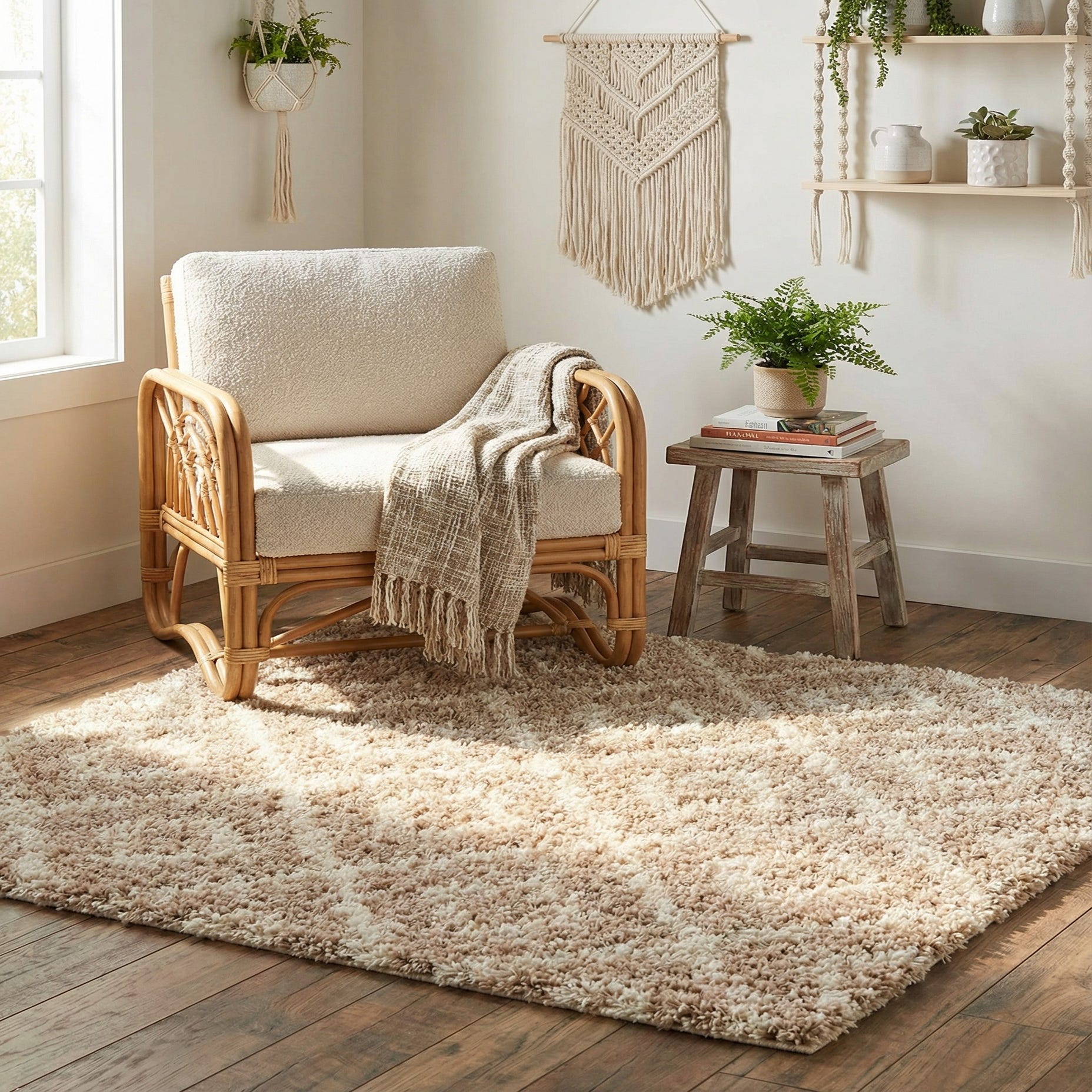 Machine-made from 100% polypropylene, this rug offers consistent construction and a forgiving, tactile surface that works well throughout the home. Use it to anchor a small seating area or under a coffee table to add warmth to hardwood floors, place it at the foot of a bed for a soft landing in the morning, or layer it in a cozy reading nook. Its neutral light brown and ivory palette pairs easily with coastal, modern farmhouse, Scandinavian, or relaxed contemporary interiors.