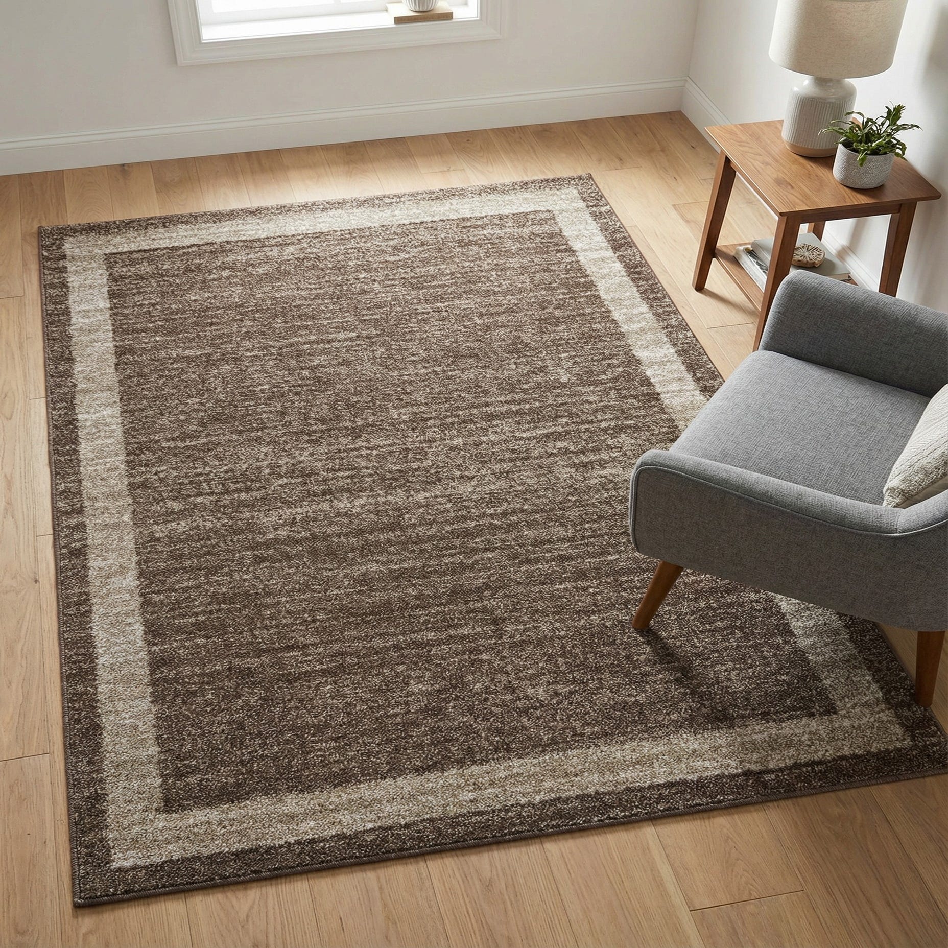 This rug works well in transitional and contemporary interiors — place it under a coffee table to anchor a neutral living room, layer it at the foot of a bed for added warmth, or set it in a home office to soften a work area. It pairs nicely with wood tones, leather seating, and ivory or cream textiles, and its low profile suits dining chairs or furniture with casters in everyday, high-traffic spaces.