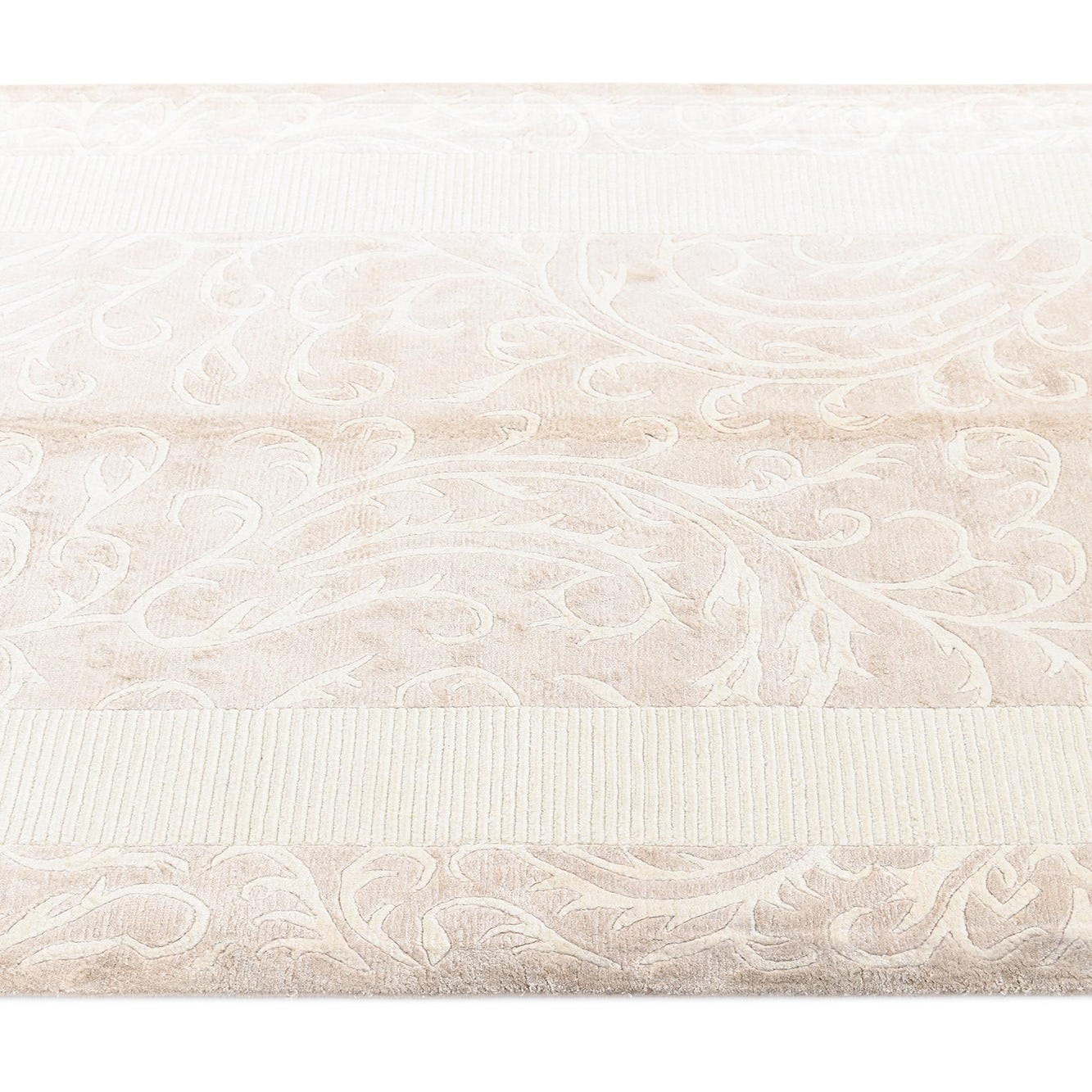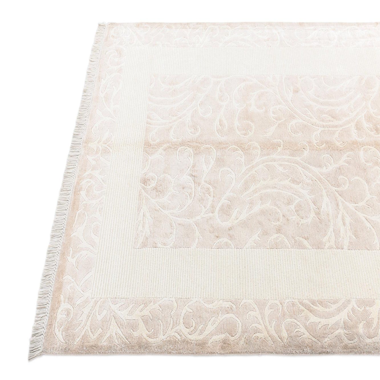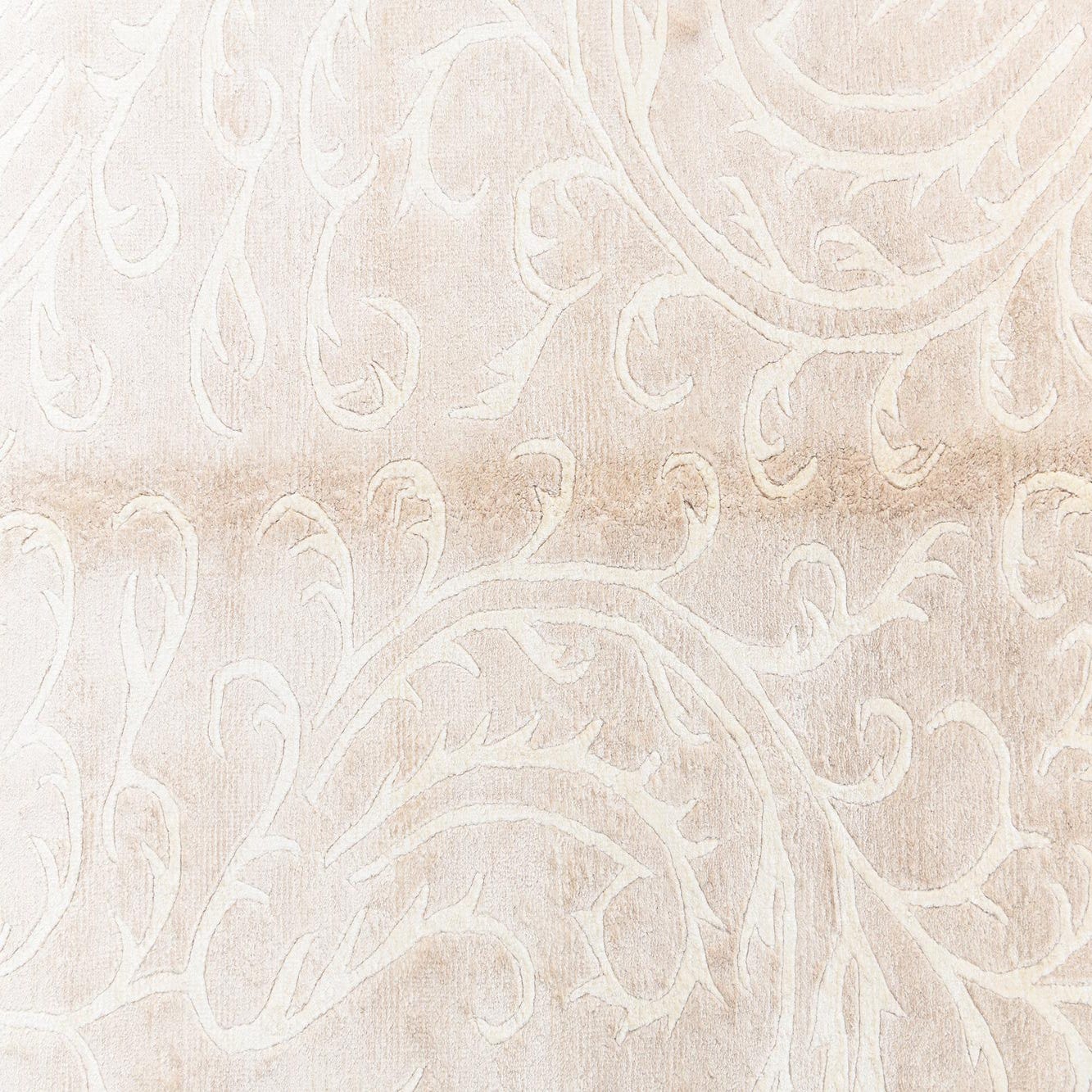 The Darya collection offers a handcrafted 4x6 area rug composed of a wool and cotton blend that ensures durability and touchable comfort. The rug features a light brown background complemented by a harmoniously blended pattern of beige and tan hues, which provides a subtle yet refined visual texture. The design showcases fluid, scrolling vine patterns that lend an organic and elegant touch to the piece. Edged with delicate fringe, this rug adds a touch of classic detailing.