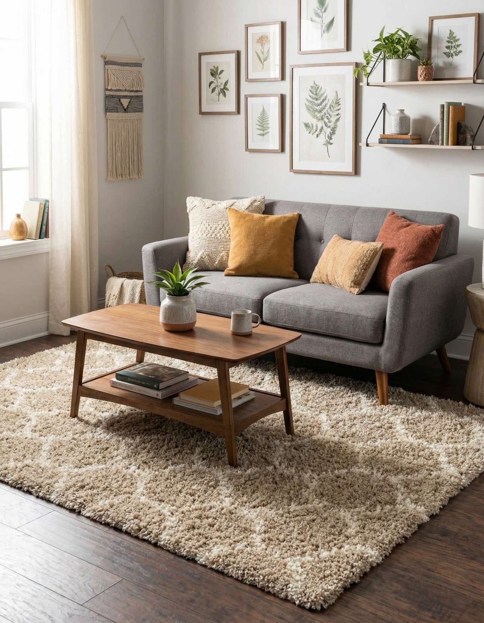 This neutral palette and gentle pattern works well in relaxed living rooms tucked beneath a coffee table, in bedrooms to add warmth and underfoot comfort, or in a cozy reading nook to anchor seating. Pair it with warm wood furniture and cream upholstery for a classic look, with leather and darker tones for contrast, or with soft blues and greens for a calm, coastal-inspired scheme.