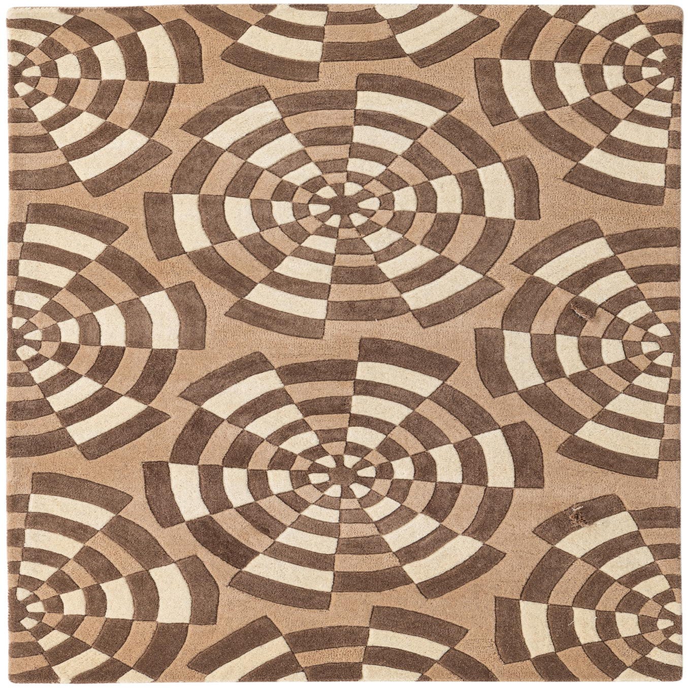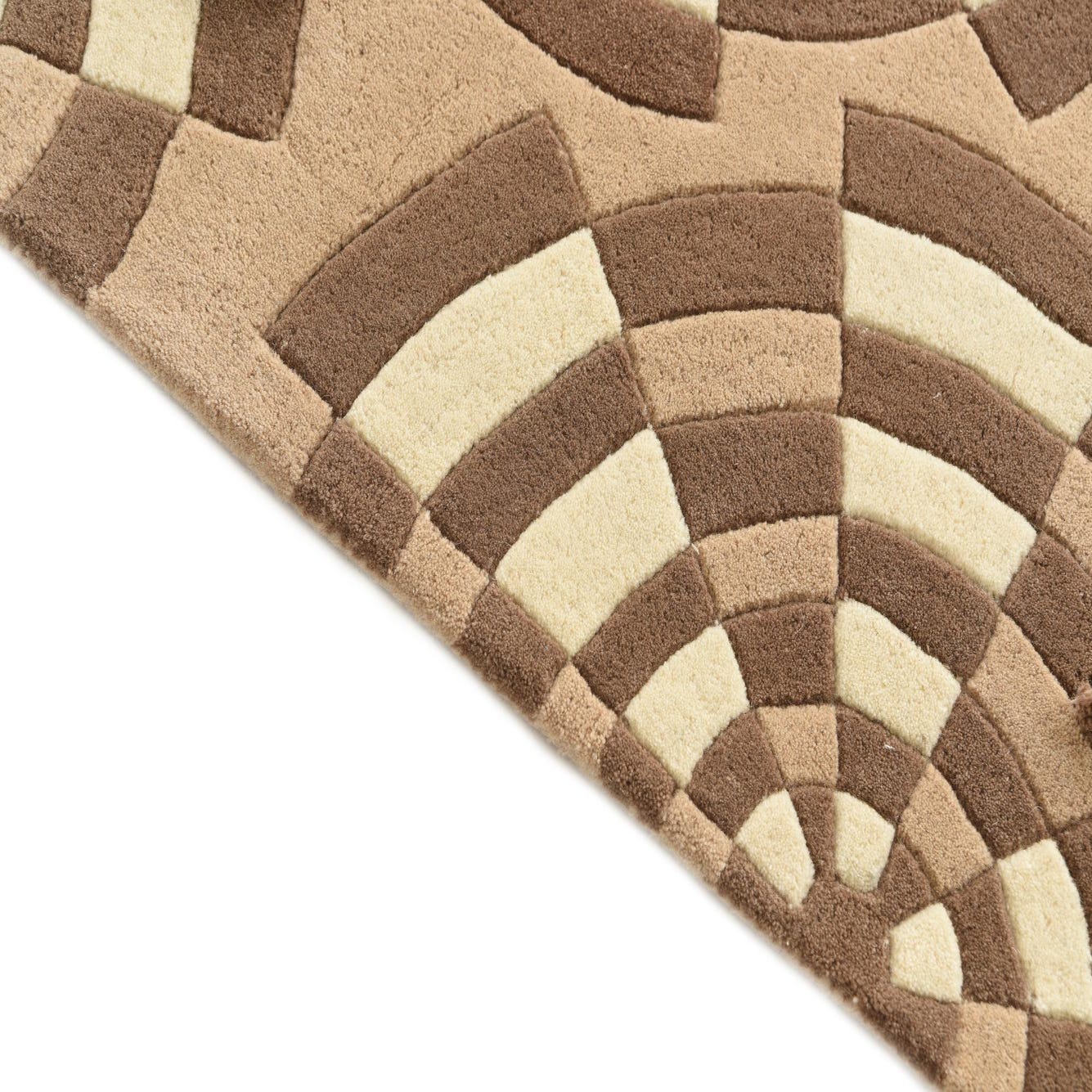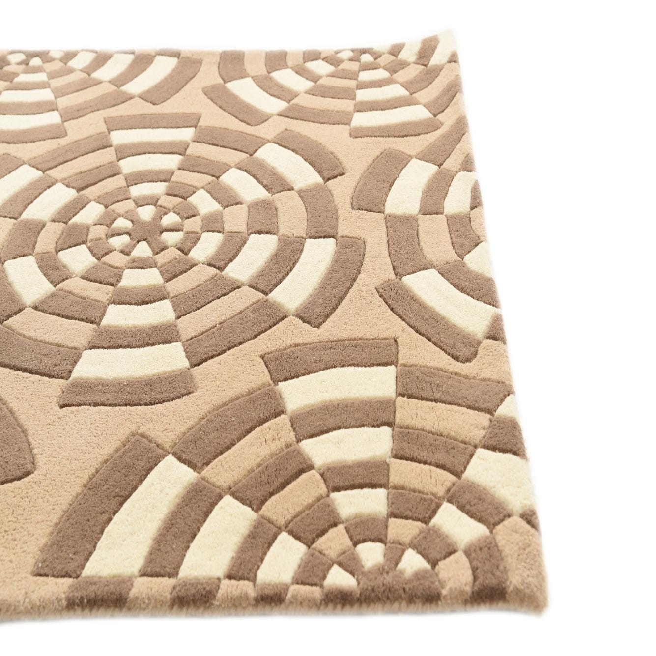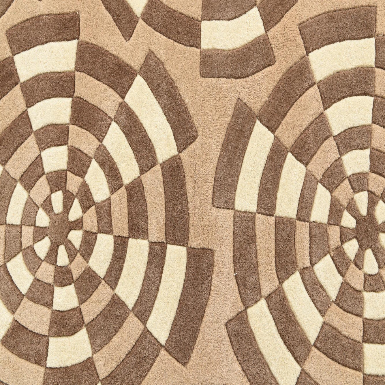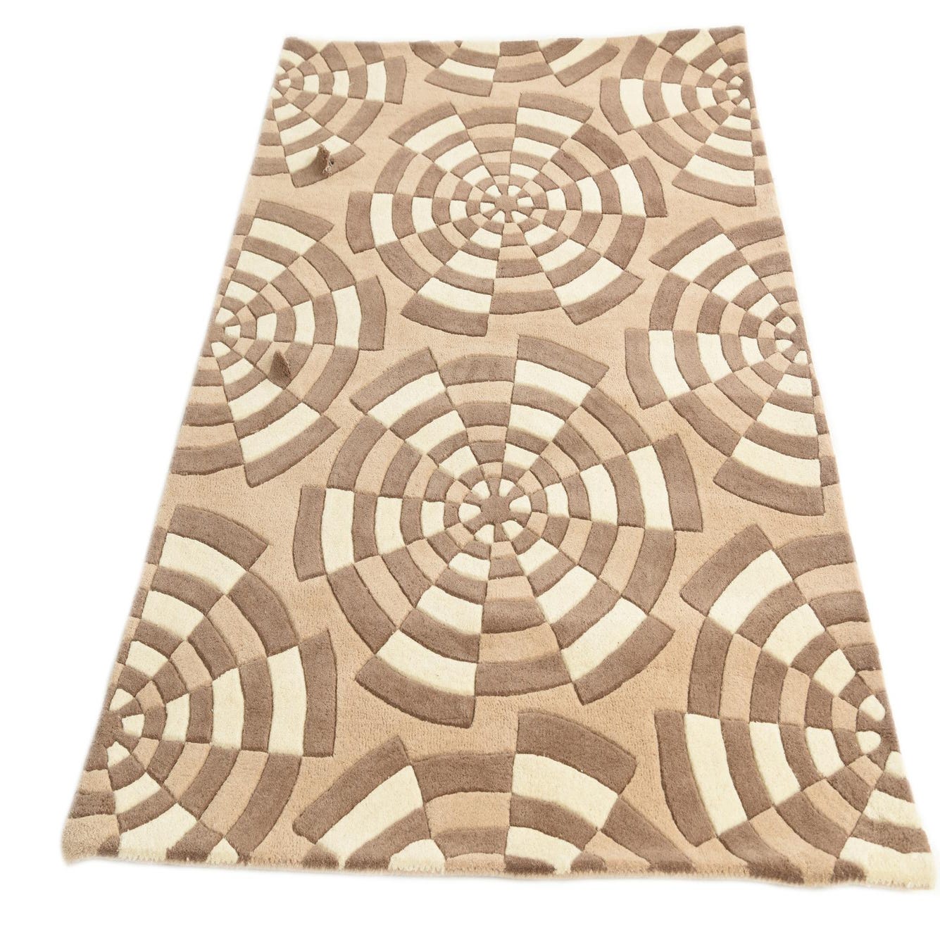 A 4x6 rectangular Luna Collection wool rug featuring a modern pattern of concentric circles in varying shades of brown and tan.