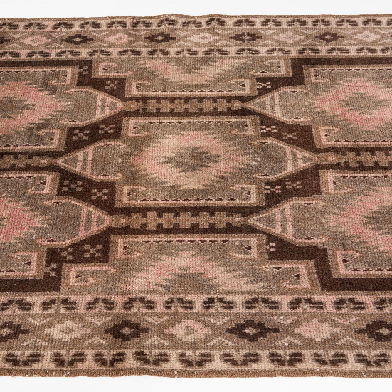 Primary color is Light Brown. Colors in this rug include: Light Brown, Brown, Rust Red, Beige.